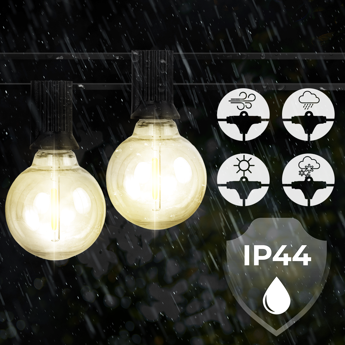 ✔️ Klasa szczelności IP44 warunkuje niezawodność i możliwość stosowania girlandy wewnątrz i na zewnątrz.