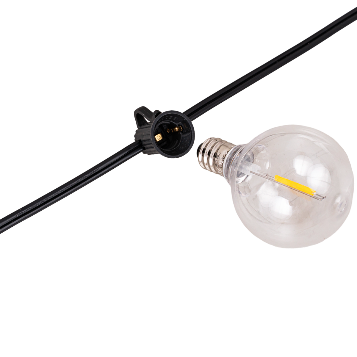 Prezentowana girlanda składa się z przewodu zasilającego o długości 7,3m, na którym umieszczono 25 gniazd na żarówki G40.