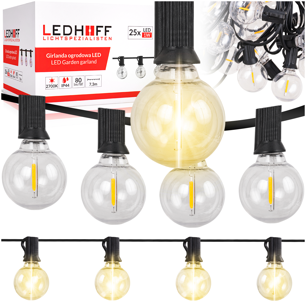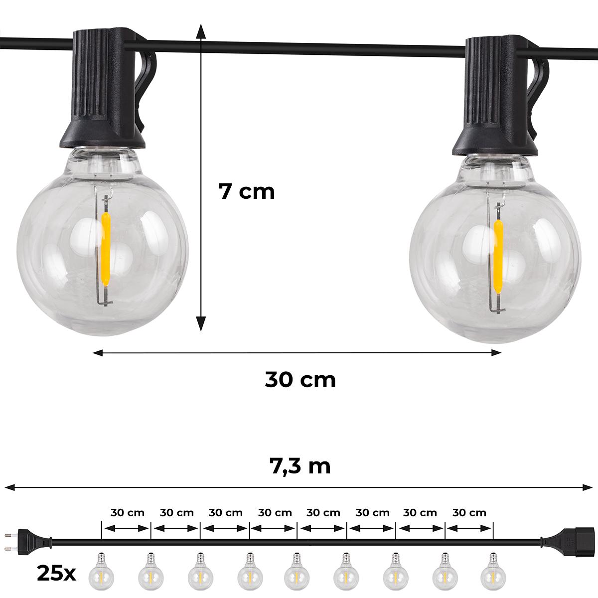 Girlanda ogrodowa łańcuch świetlny 7,3m + 25x żarówka LED dekoracja świąteczna