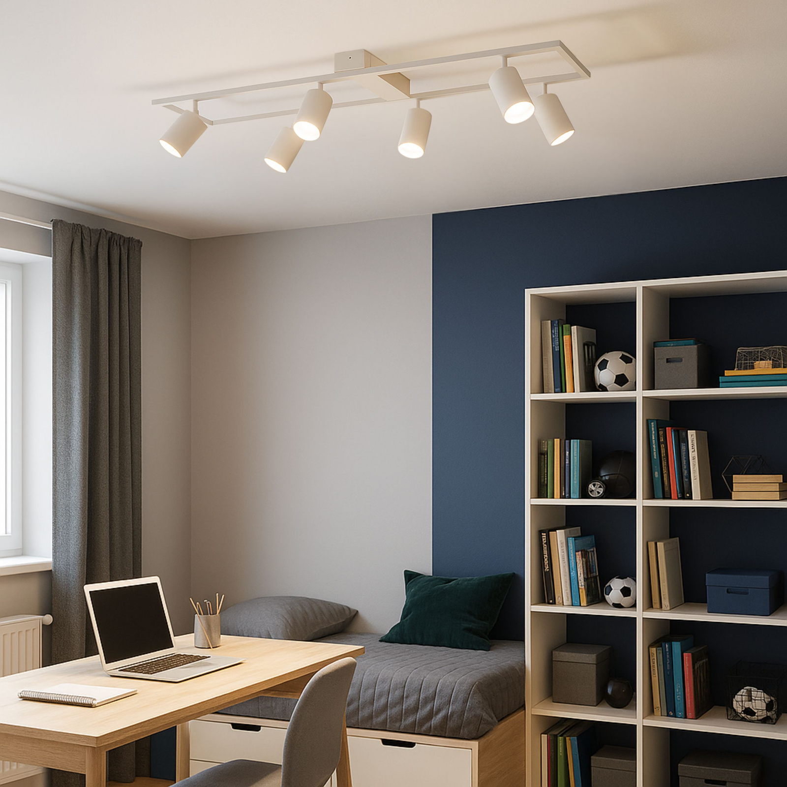 Potrzebujesz solidnego i stylowego oświetlenia do większego wnętrza? Ta biała lampa sufitowa z 6 niezależnymi reflektorami GU10 to połączenie nowoczesnego designu i funkcjonalności. Doskonale sprawdzi się jako główne źródło światła w salonie, kuchni, biurze czy przestrzeni komercyjnej.