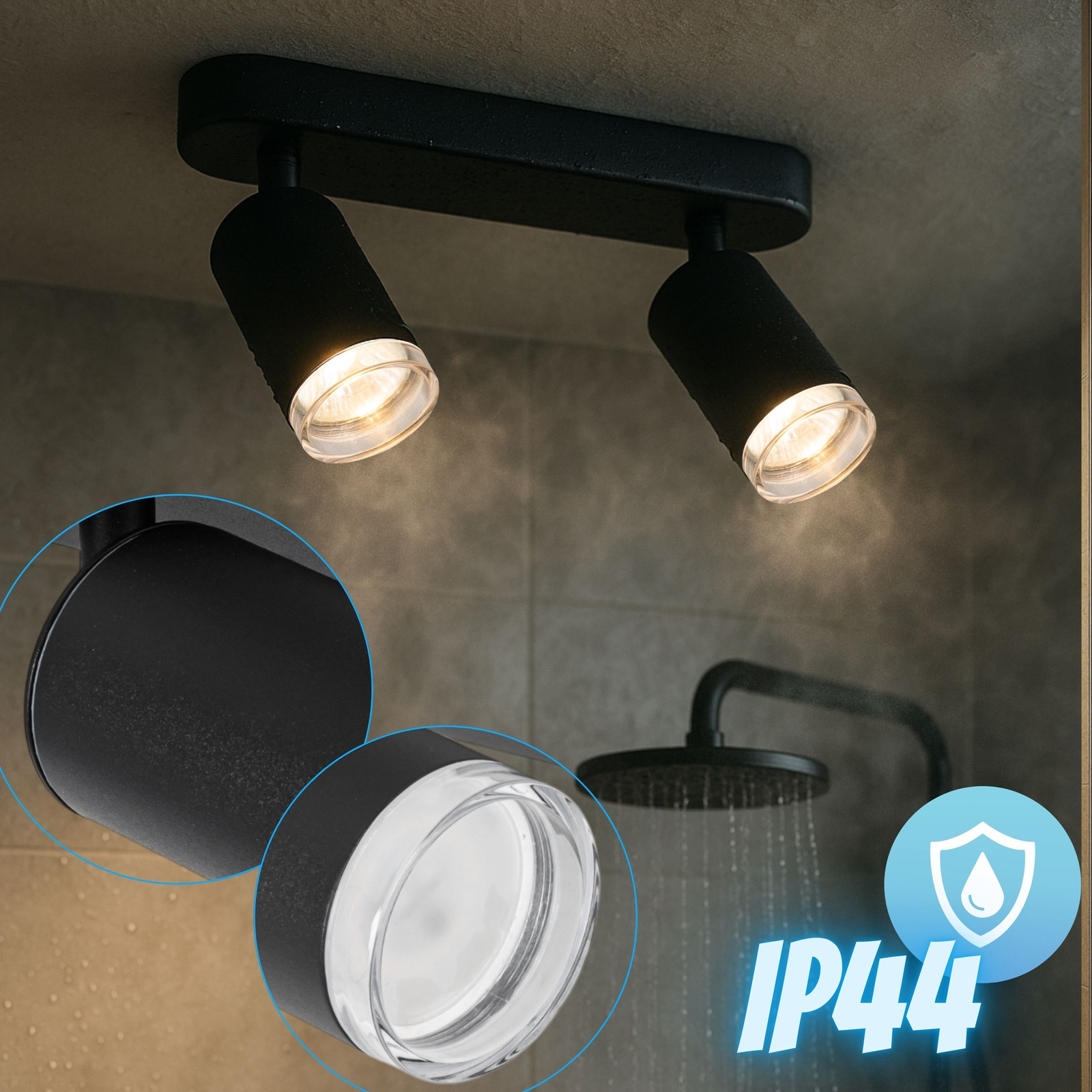 Kinkiet sufitowy podwójny SPOT 2xGU10 czarny wodoodporny