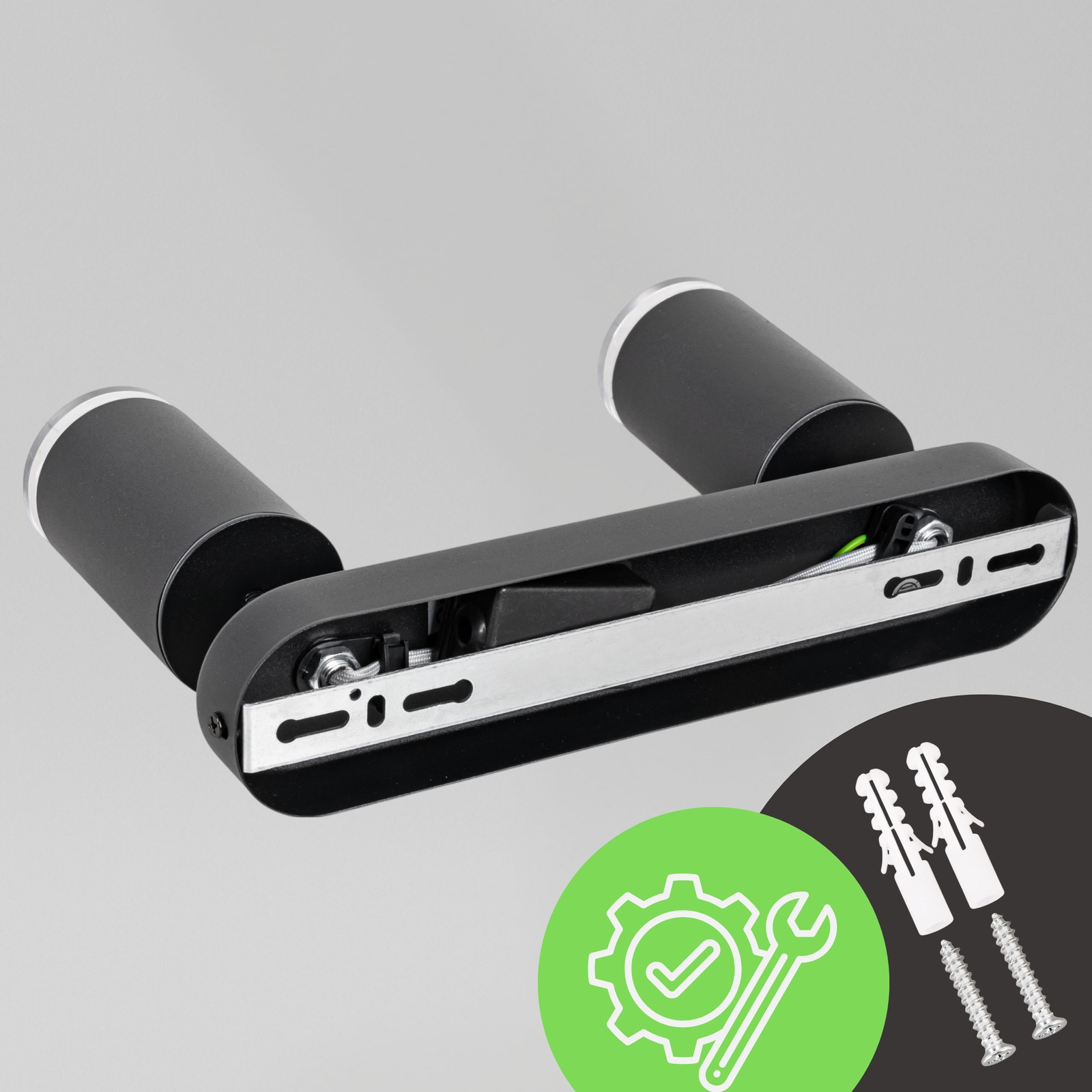 Uniwersalna 2-punktowa oprawa typu kinkiet, znajdująca zastosowanie zarówno na zewnątrz jak i wewnątrz pomieszczeń.