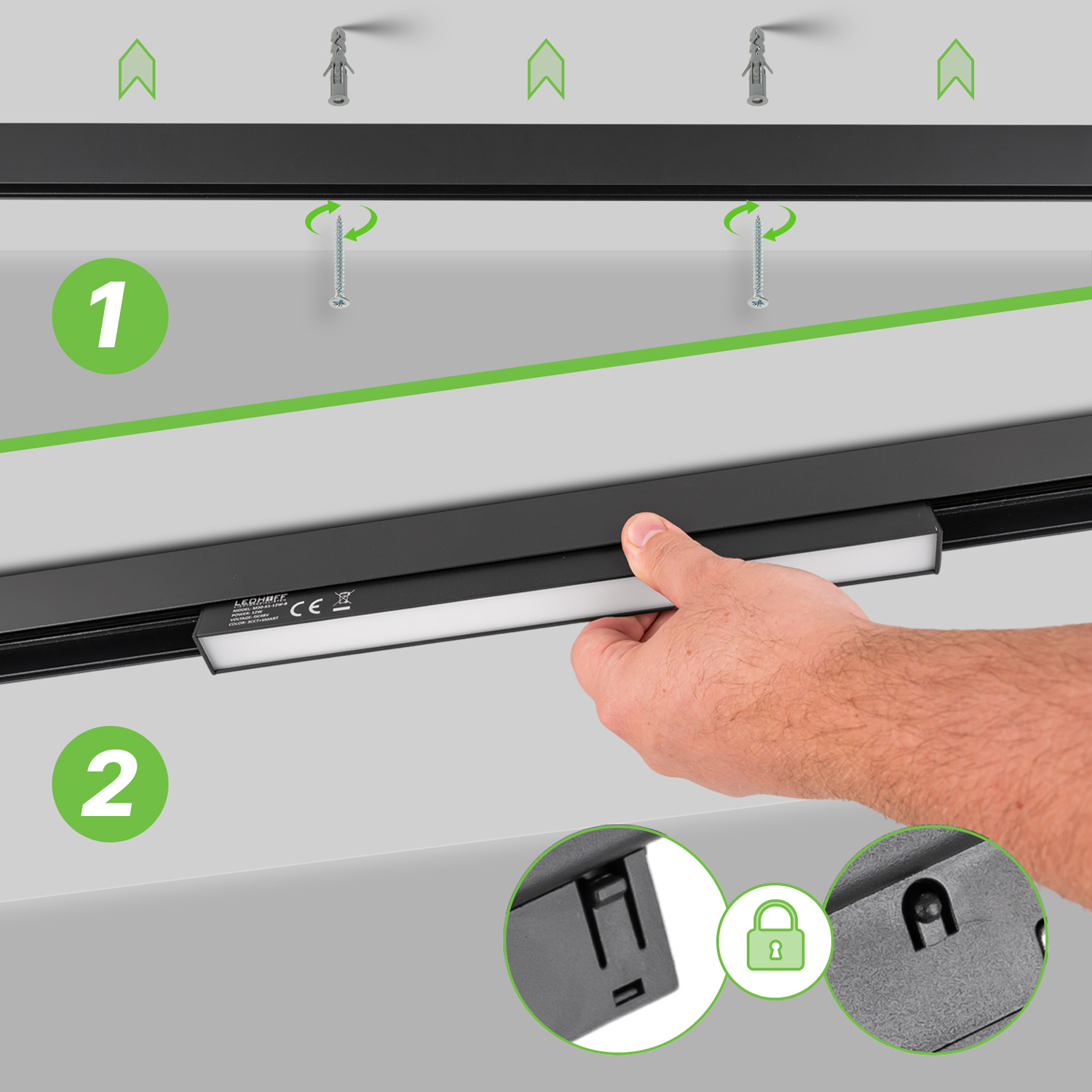 Lampa liniowa LED 12W / 30 cm pasuje do systemu oświetlenia magnetycznego 48V – zarówno wpuszczanego, natynkowego, jak i wiszącego. Wystarczy, że Twoja szyna to magnetyczny tor 48V (czarny, aluminiowy) – lampa wpięta zostanie bez narzędzi dzięki magnetycznemu mocowaniu.