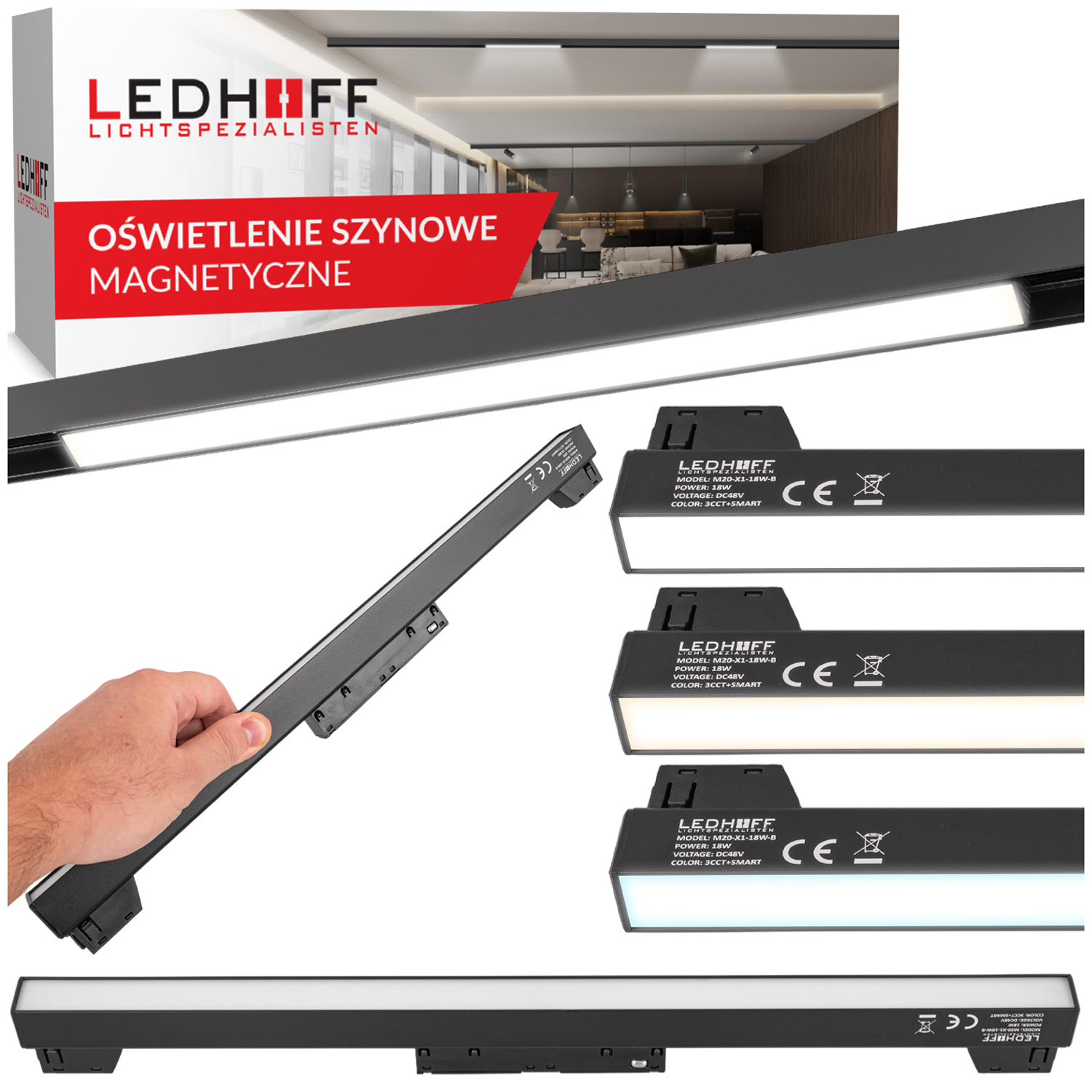 System oświetlenia szynowego magnetycznego marki LEDHOFF to połączenie maksymalnej efektywności (pełna elastyczność aranżacji, barwy i kierunku światła) i wyrafinowanej estetyki - wąskie, subtelne linie z wykończeniem w kolorze czarny mat to mocny akcent dekoracyjny, który z łatwością dopasuje się do każdego wnętrza.