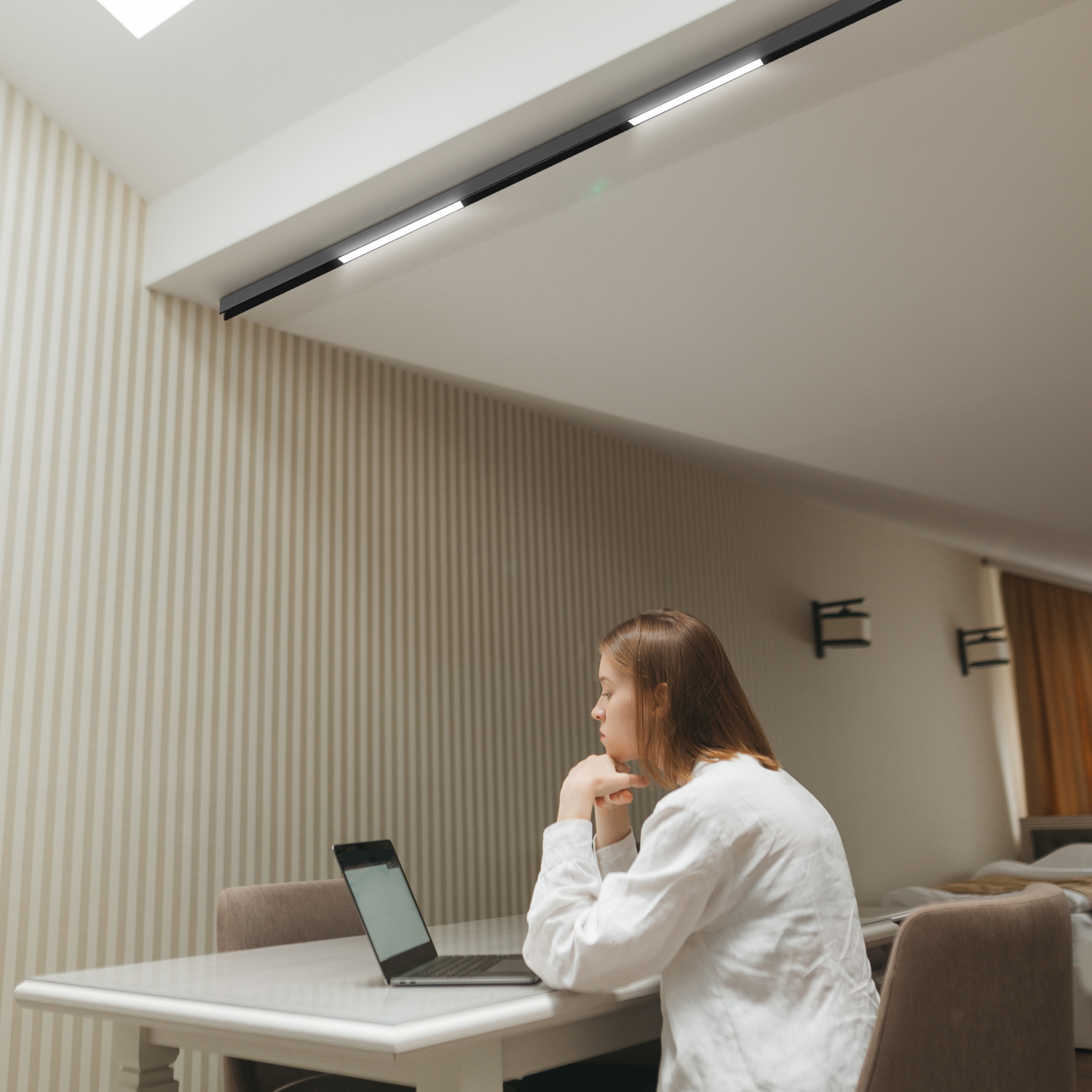 Lampa liniowa LED 18W / 45 cm pasuje do systemu oświetlenia magnetycznego 48V – zarówno wpuszczanego, natynkowego, jak i wiszącego. Wystarczy, że Twoja szyna to magnetyczny tor 48V (czarny, aluminiowy) – lampa wpięta zostanie bez narzędzi dzięki magnetycznemu mocowaniu.