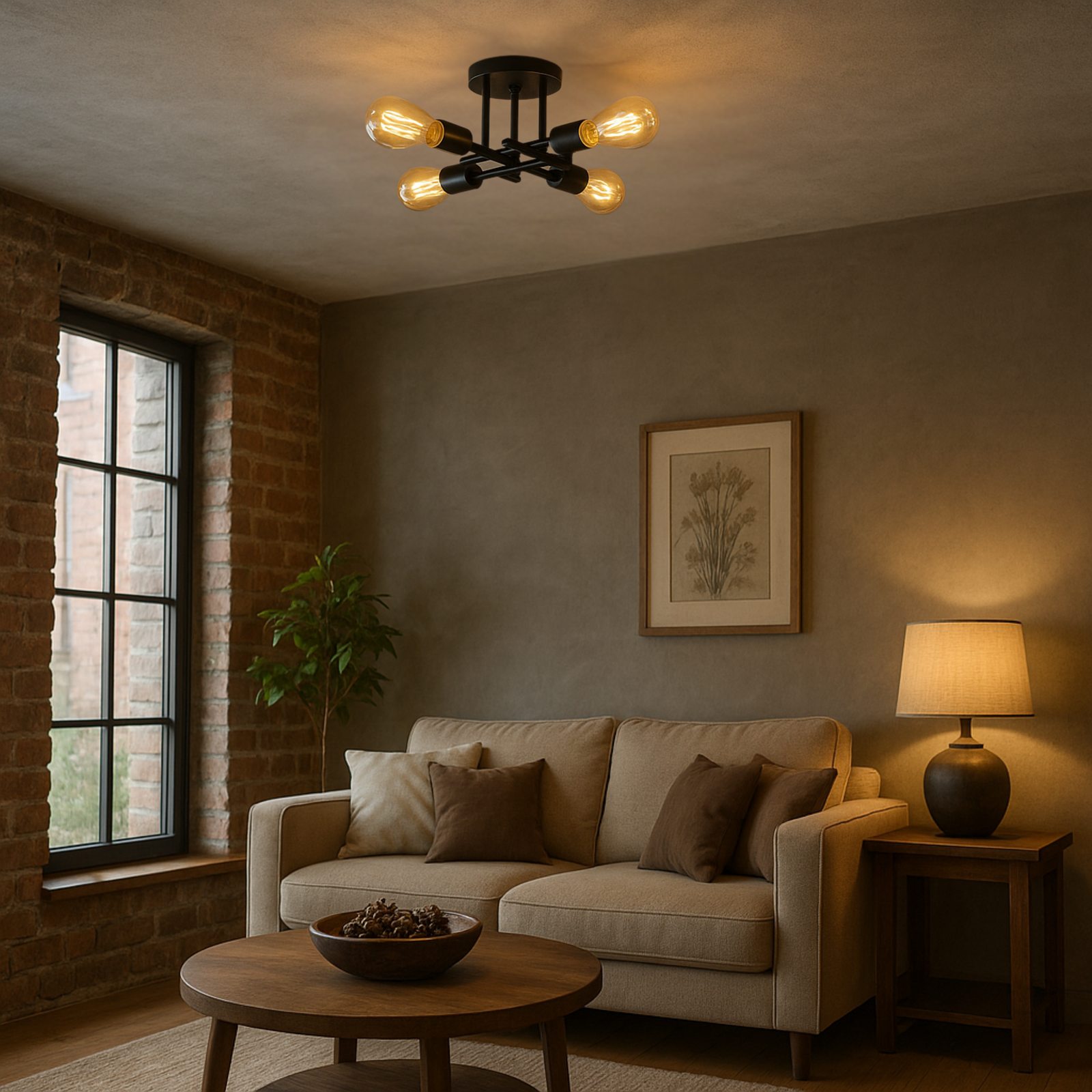 Pełną funkcjonalność i komfort dla oczu zapewniają cztery punkty pod gwint E27, których precyzyjne rozmieszczenie pozwoli na dokładne i harmonijne rozproszenie światła po całym pomieszczeniu.
