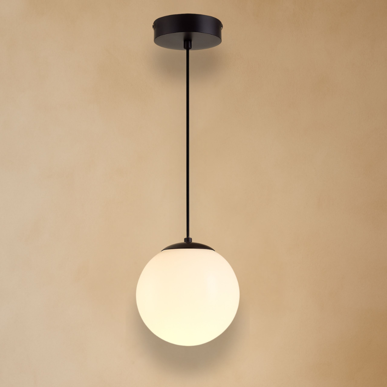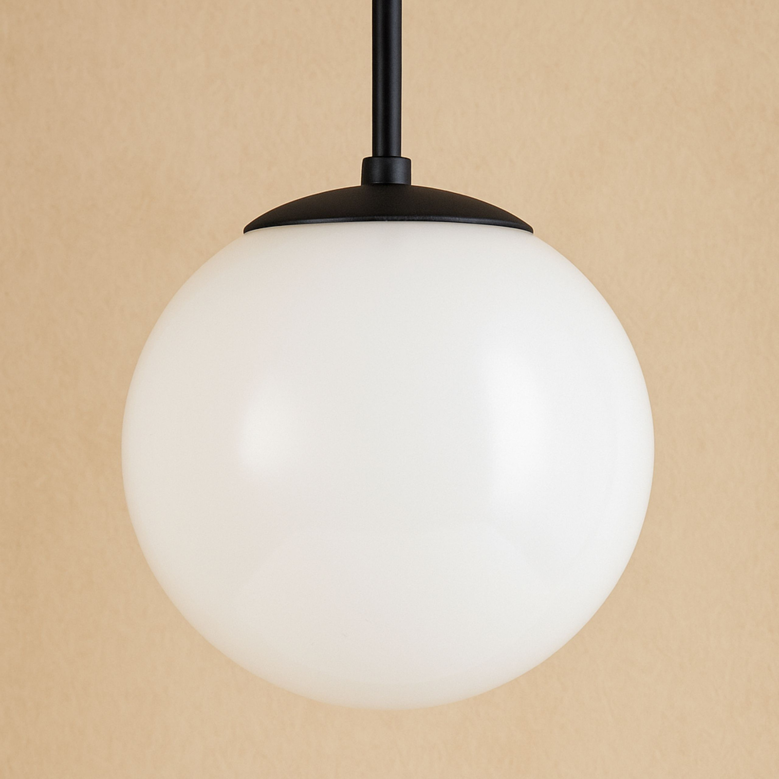 Lampa sufitowa czarna metalowa z mlecznym kloszem ozdobna szklana kula E27
