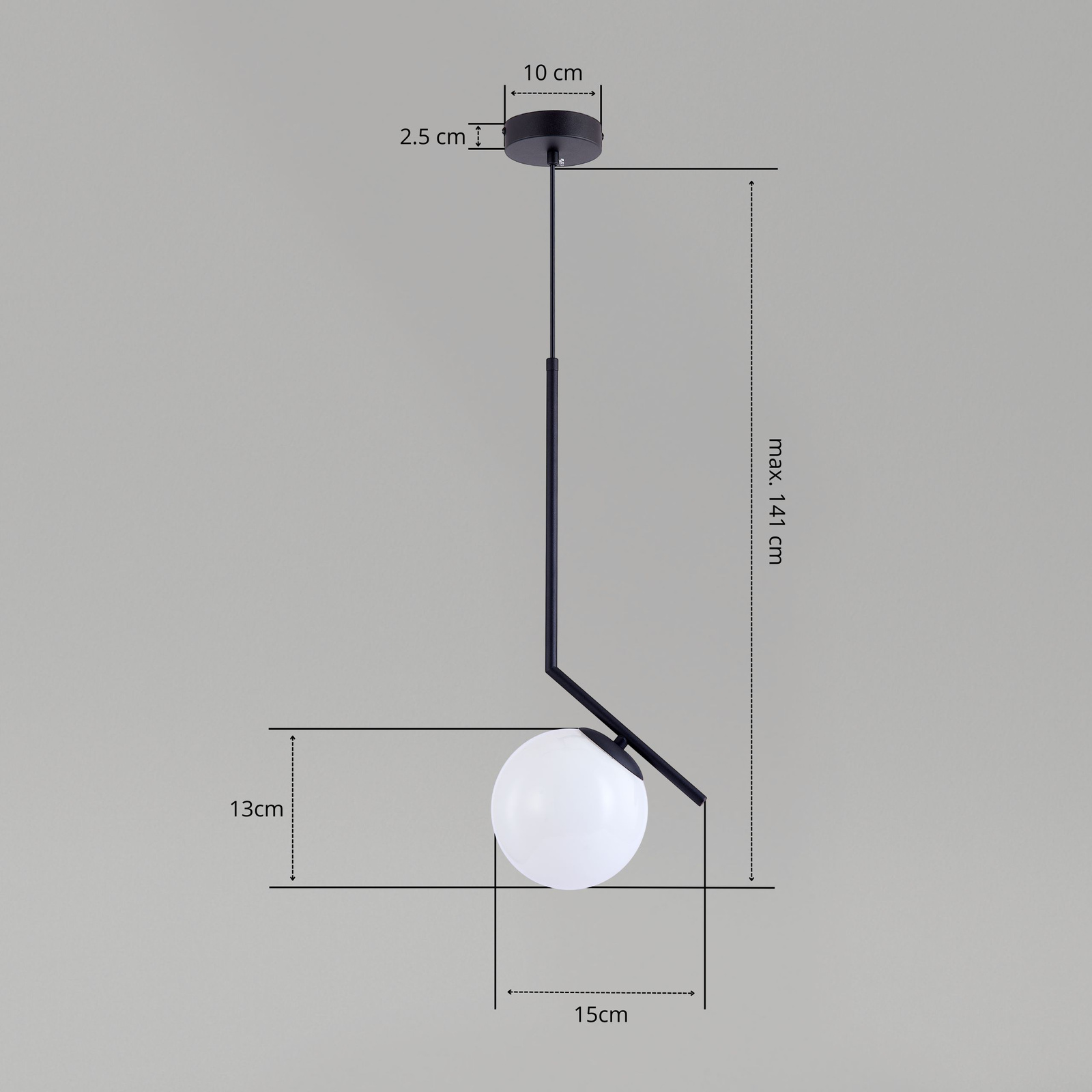 Lampa sufitowa czarna metalowa z mlecznym kloszem ozdobna szklana kula E27 design