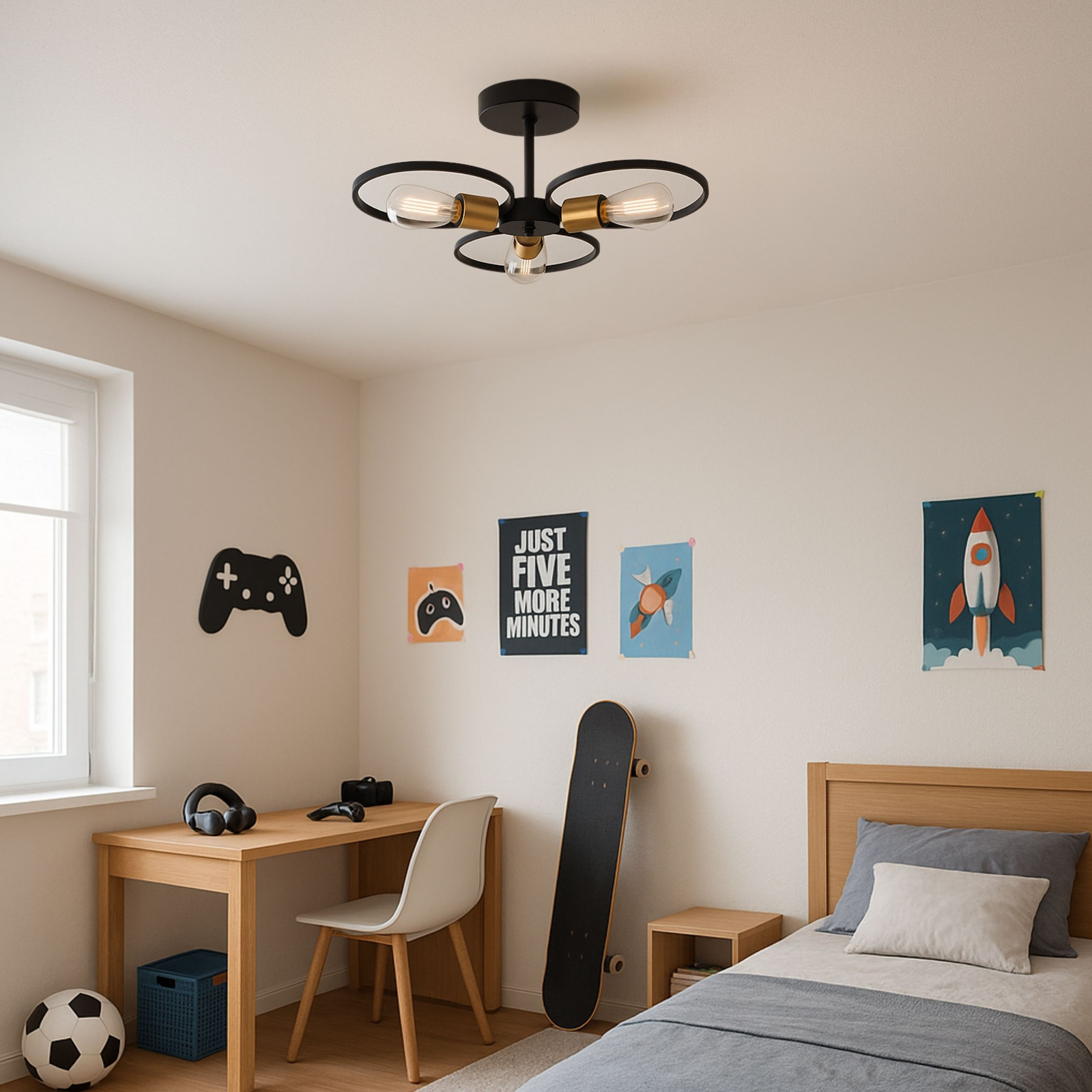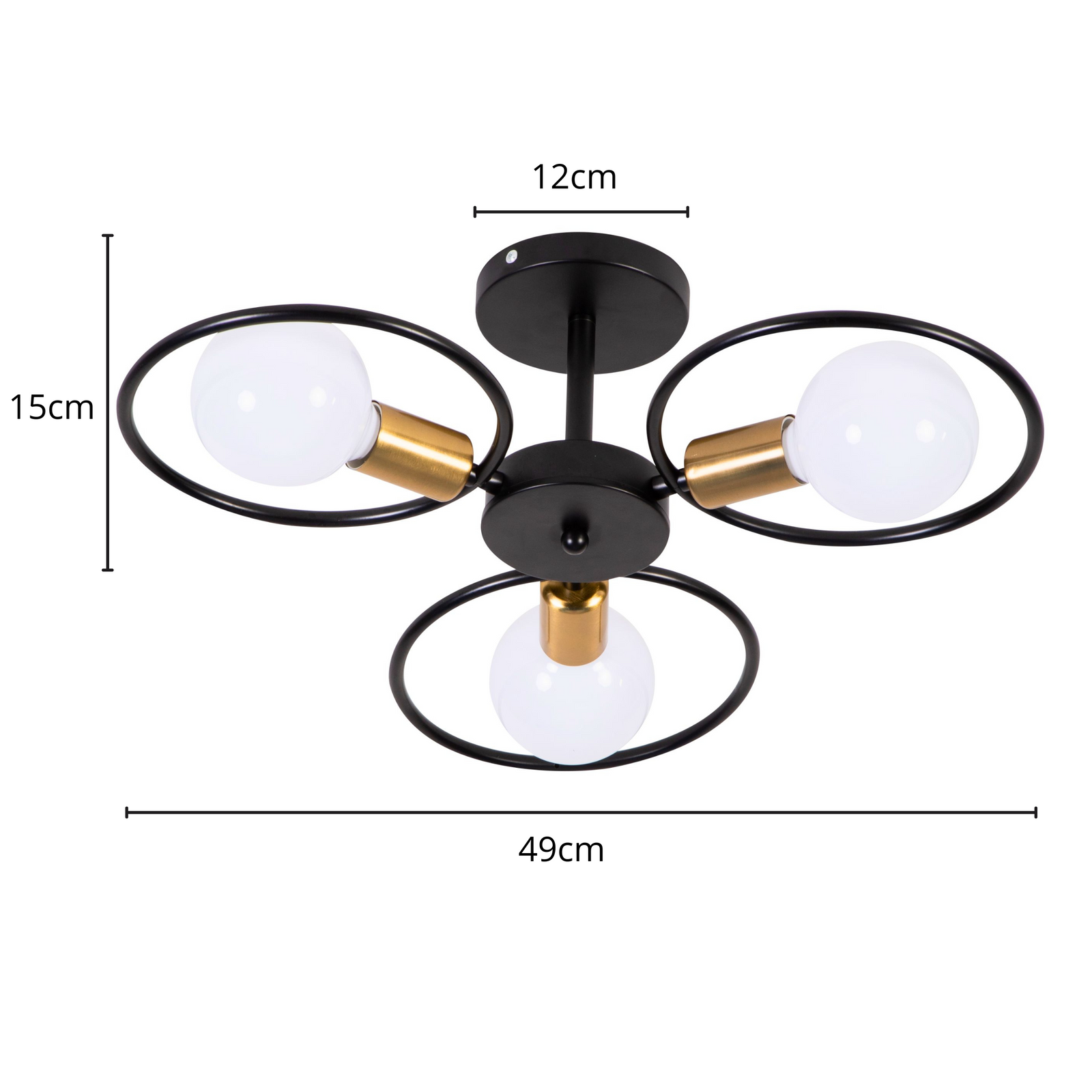 Lampa sufitowa czarno-złota metalowa E27 ozdobna 3-punktowa design