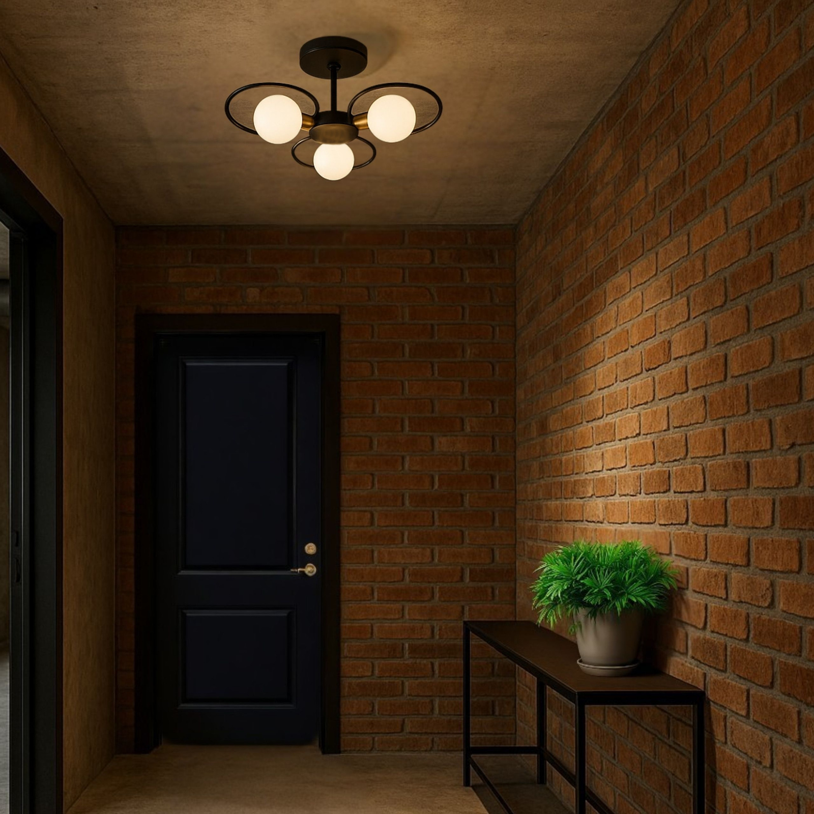 Czarna, metalowa w formie łagodnych kręgów nadaje lampie elegancji i szyku, a złote oprawki subtelnie podkreślają jej luksusowy charakter.