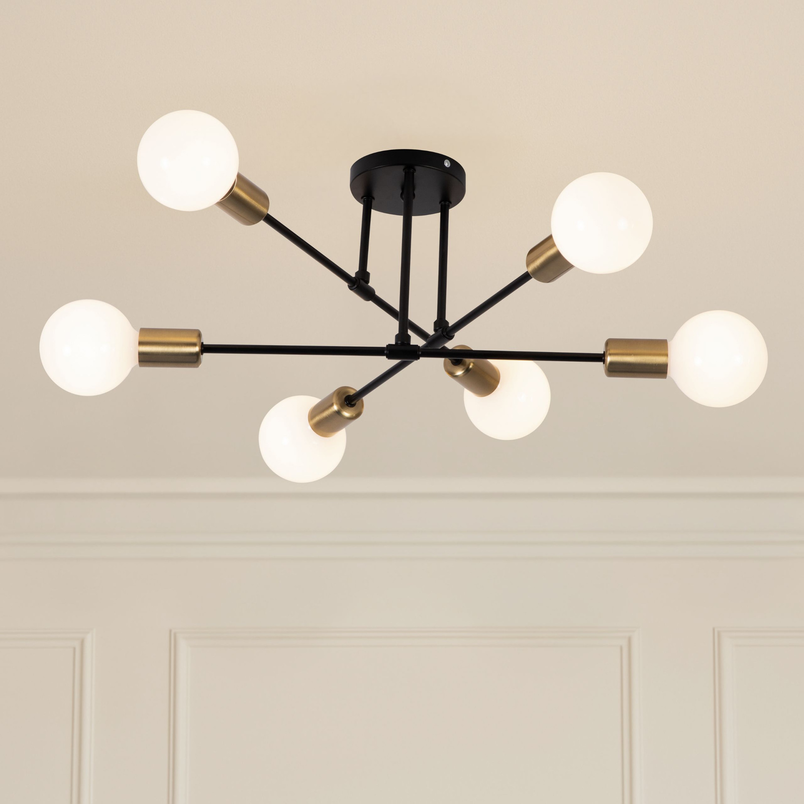 Lampa sufitowa czarno-złota metalowa E27 ozdobna 6-punktowa Trinity