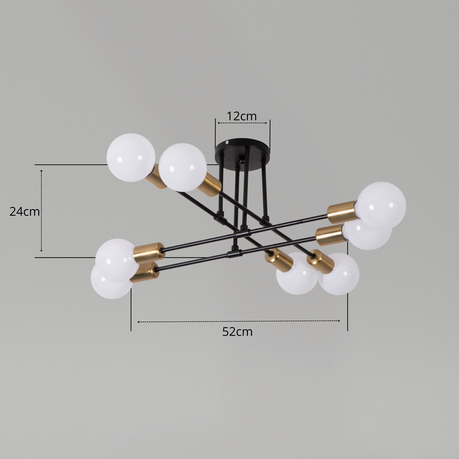 Lampa sufitowa czarno-złota metalowa E27 ozdobna 8-punktowa