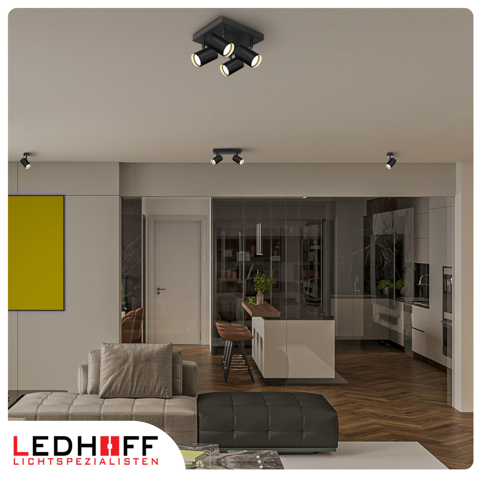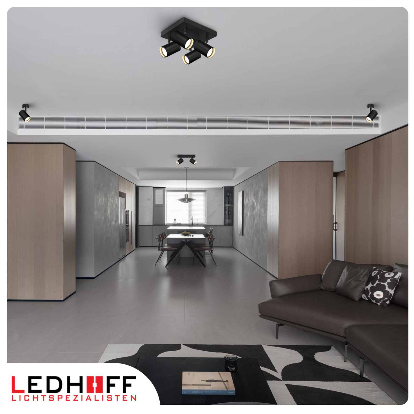 Szukasz mocnego, funkcjonalnego i nowoczesnego oświetlenia do większych pomieszczeń? Ta czarna lampa sufitowa LEDHOFF z czterema niezależnie regulowanymi reflektorami zapewnia maksymalną elastyczność i pozwala doświetlić kilka stref jednocześnie. Minimalistyczny design, solidna konstrukcja i pełna regulacja sprawiają, że to idealna propozycja do wnętrz w stylu nowoczesnym, industrialnym i loftowym.