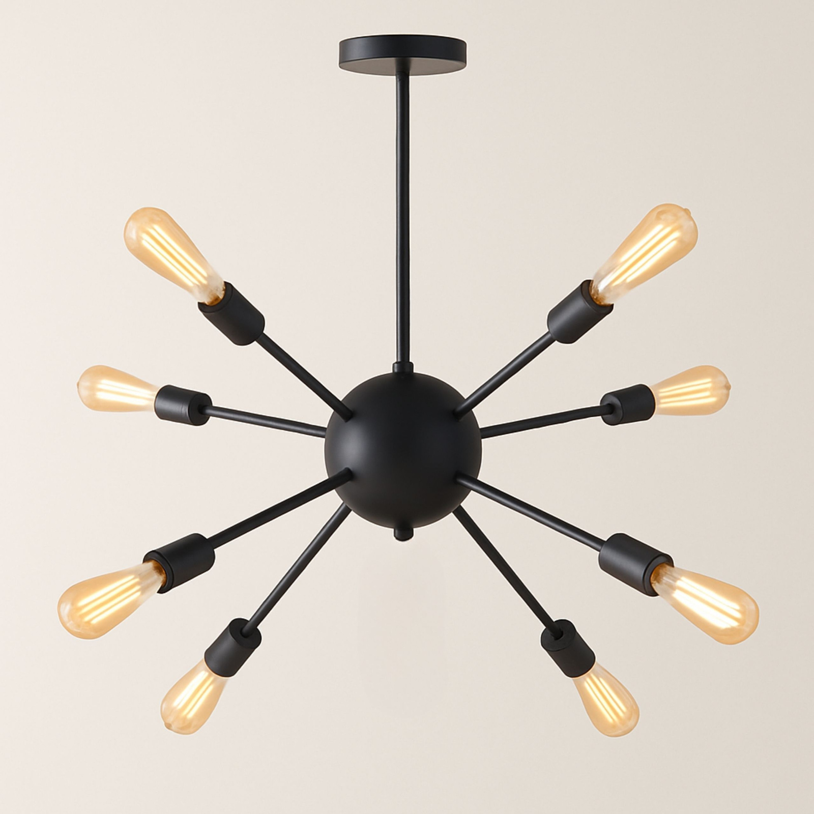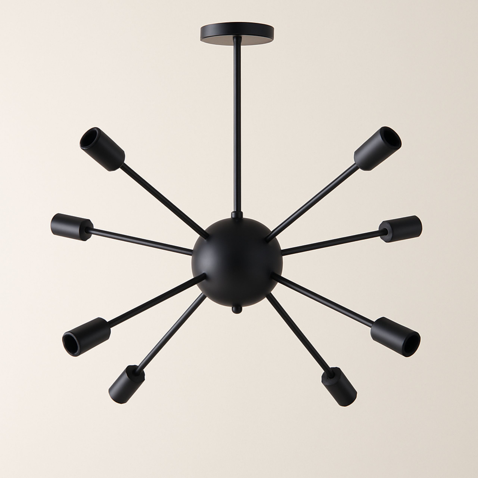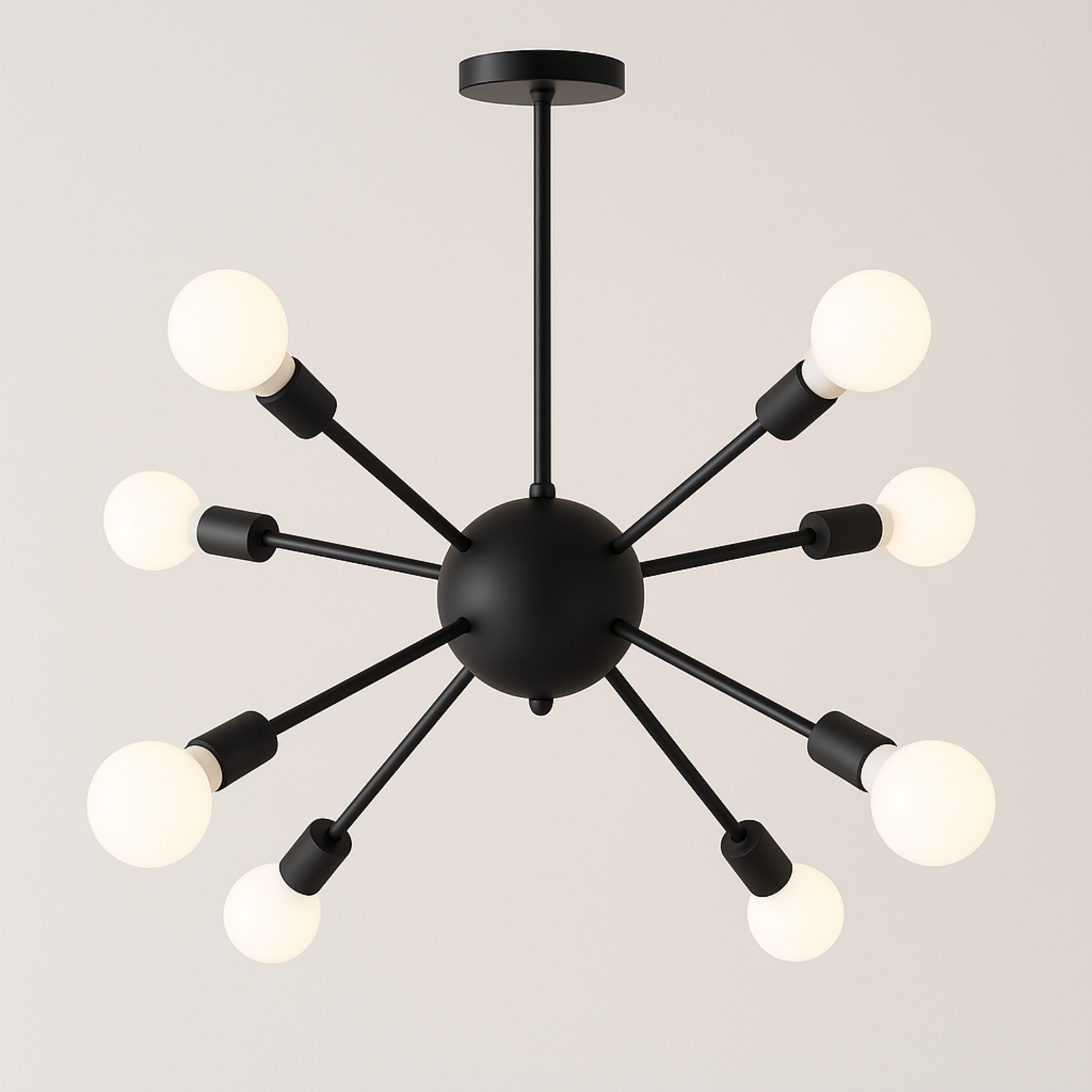 Lampa typu Sputnik charakteryzuje się nowoczesnym, gwiaździstym układem ramion z wieloma punktami świetlnymi. Dzięki temu daje efektowny, designerski wygląd i równomiernie oświetla całe pomieszczenie. To ikona stylu mid-century modern, która doskonale sprawdza się także w aranżacjach loftowych i industrialnych.