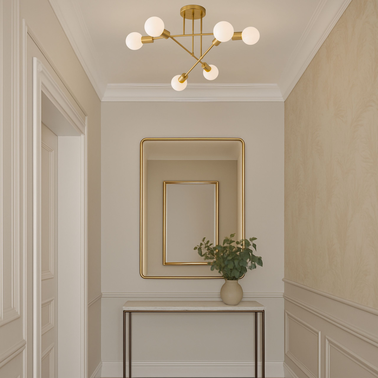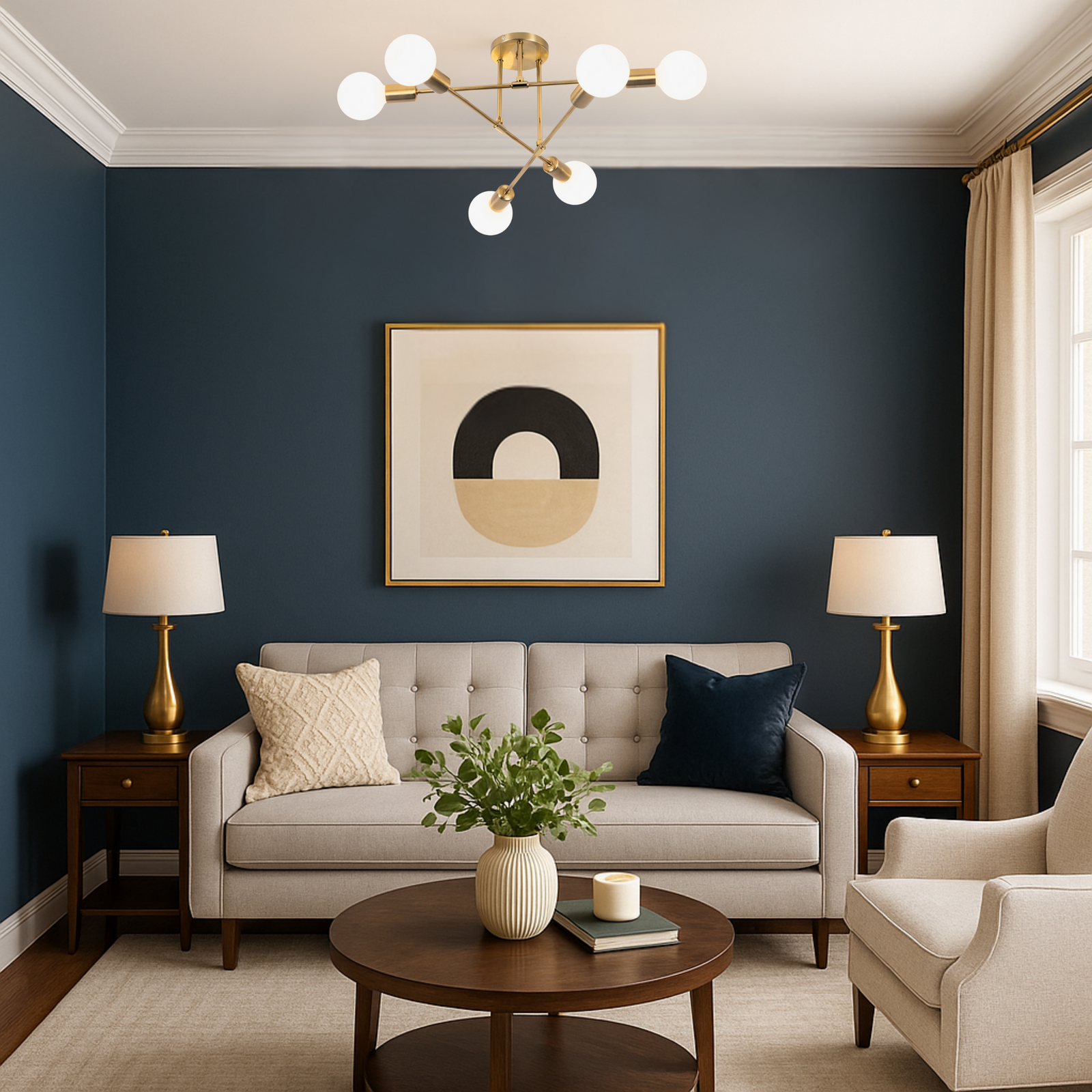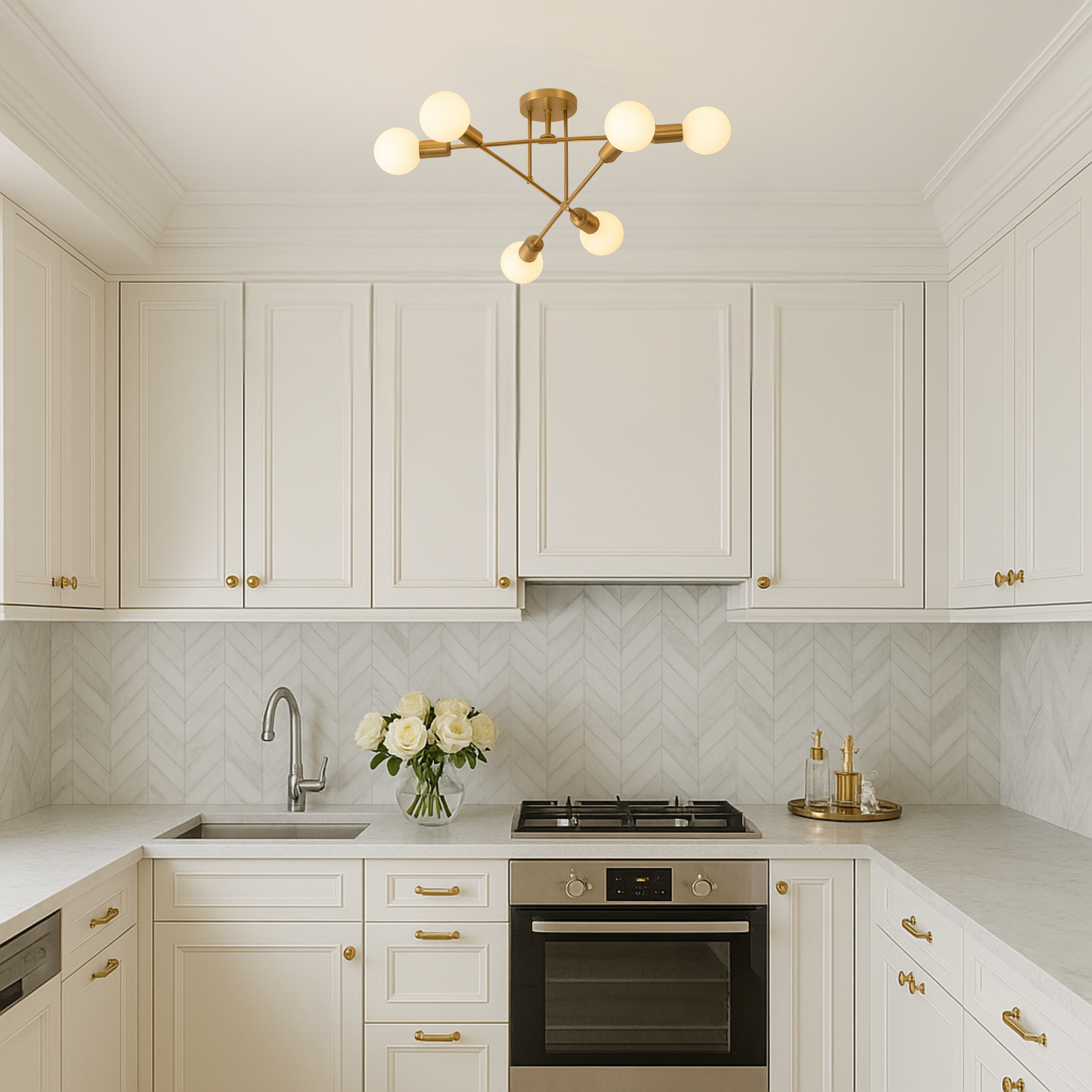 To nowoczesne połączenie geometrycznego designu, złotego wykończenia i praktycznego oświetlenia, które doskonale odnajdzie się zarówno w aranżacjach klasycznych, jak i w przestrzeniach utrzymanych w stylu loft czy glamour.
