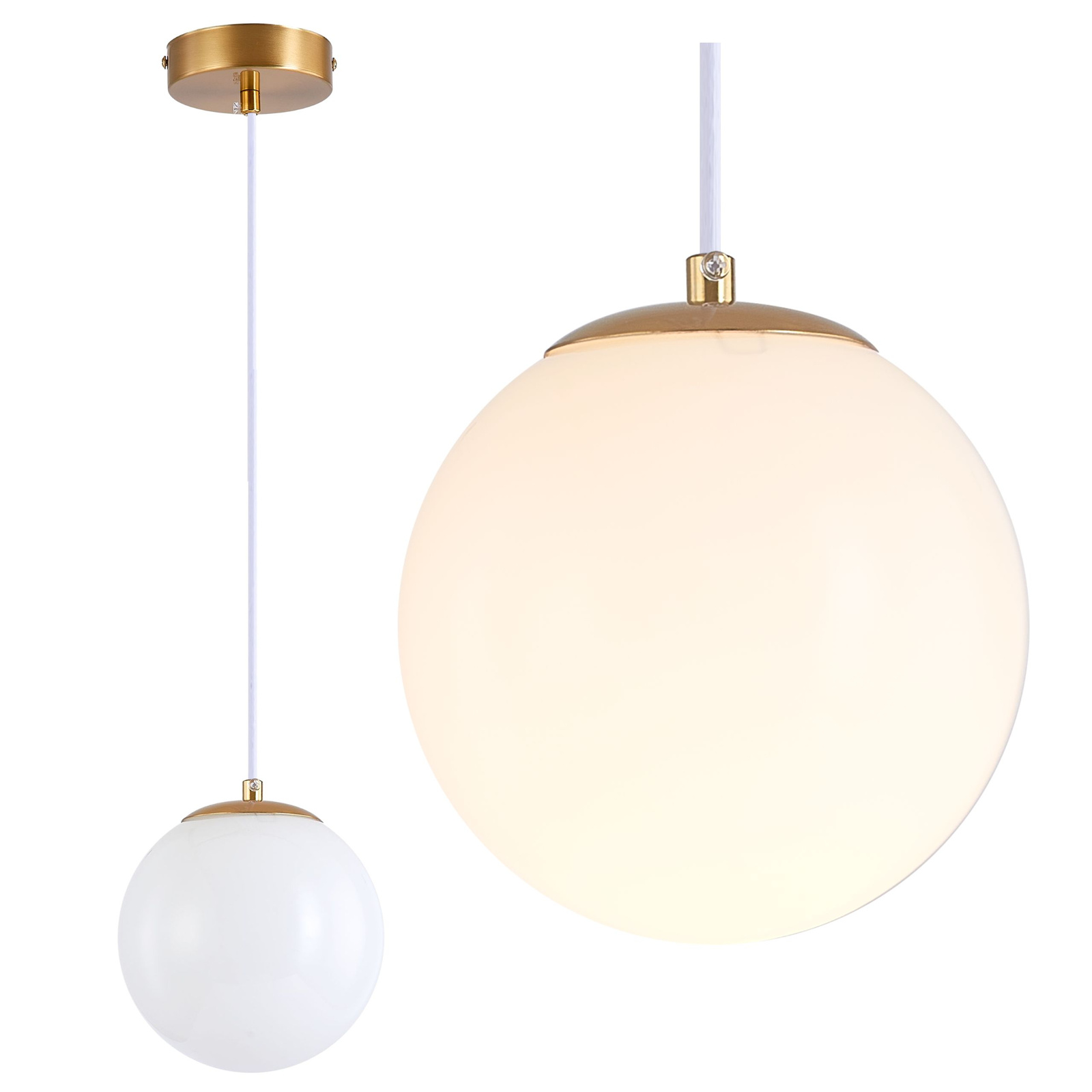 Lampa sufitowa złota metalowa z mlecznym kloszem ozdobna szklana kula E27