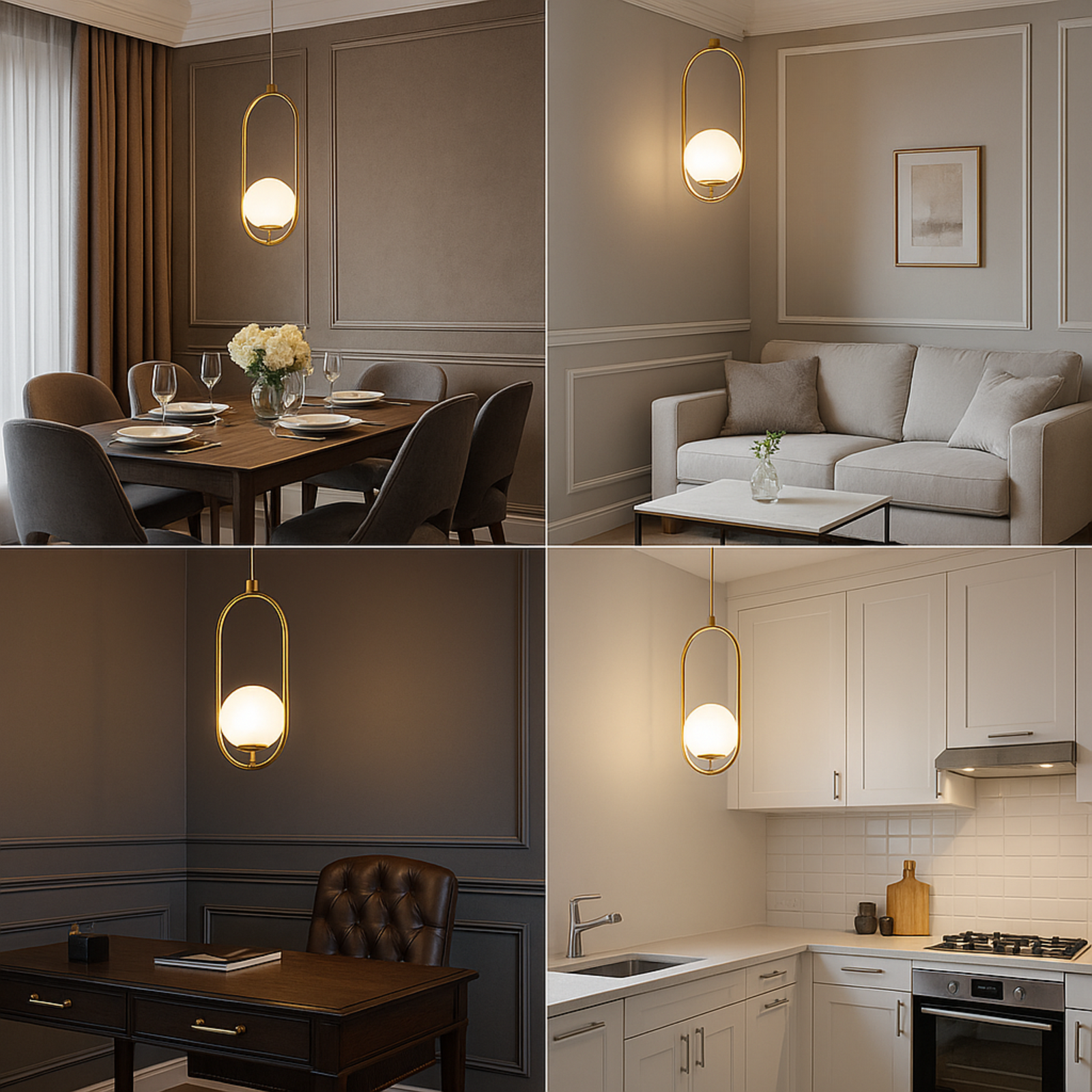 Ta nowoczesna lampa wisząca jest idealnie zbalansowanym połączeniem nowoczesności i ponadczasowej elegancji, więc sprawdzi się w pomieszczeniach takich jak: