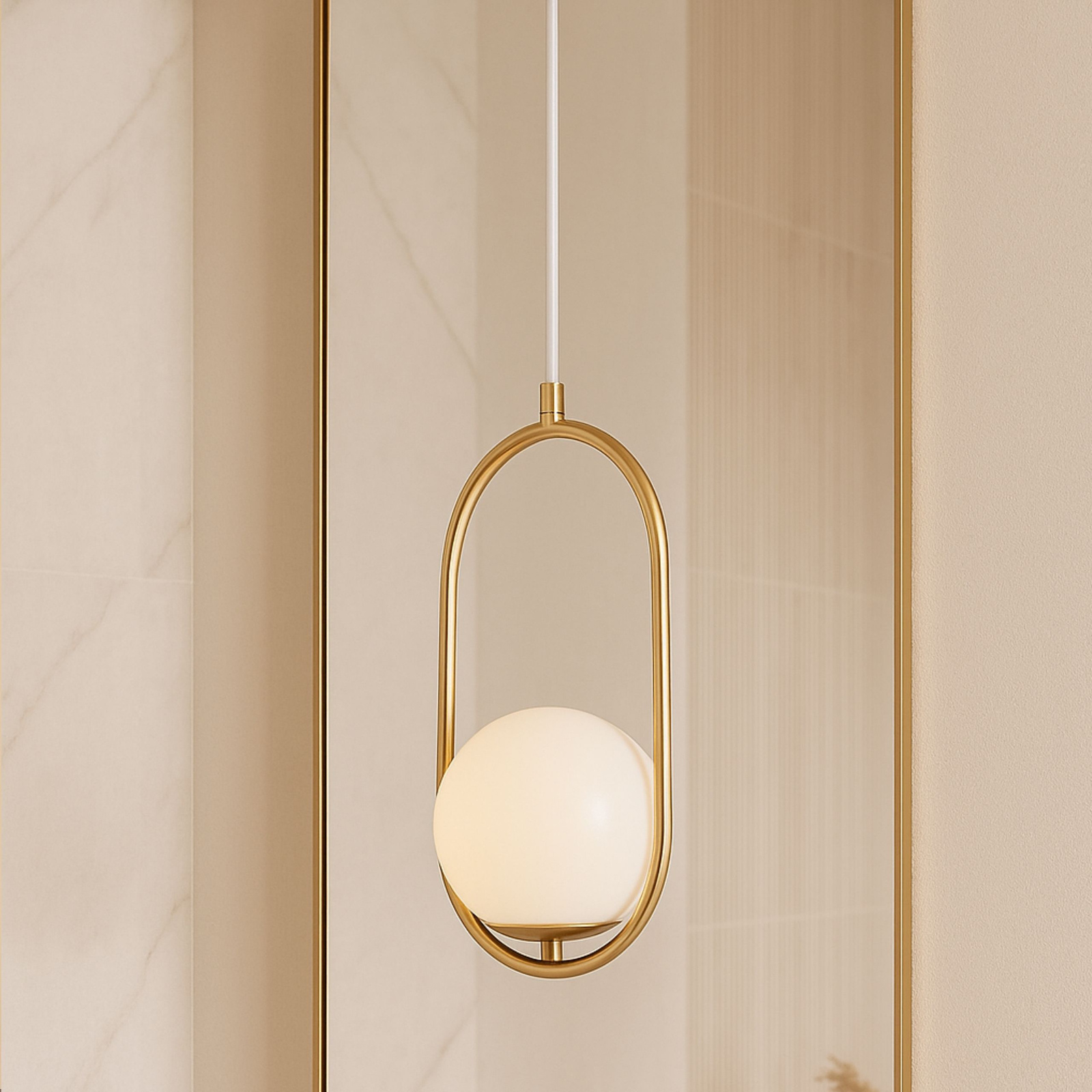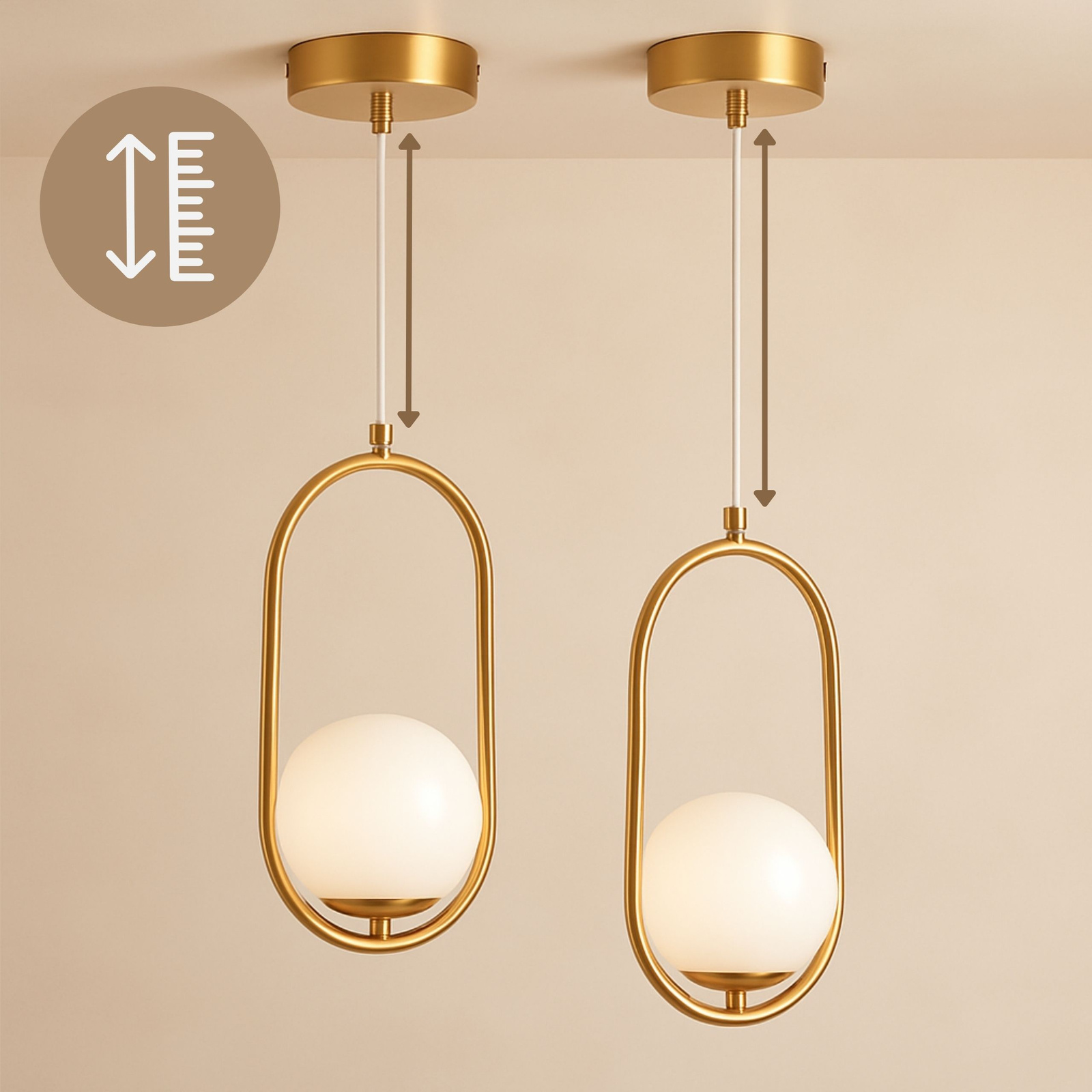 Podkreśl ponadczasową elegancję swojego wnętrza dzięki dekoracyjnej lampie sufitowej marki LEDHOFF. Smukła, złota rama w formie wydłużonego owalu otacza kulisty klosz z mlecznego szkła, tworząc harmonijną kompozycję, która zachwyci zarówno w nowoczesnym, jak i klasycznym wnętrzu. Ta stylowa lampa wisząca nie tylko stanie się unikatową ozdobą każdego pomieszczenia, ale także zadba o profesjonalne i dokładne oświetlenie wnętrza przy pomocy punktu światła, którego odległość od sufitu można dowolnie regulować.