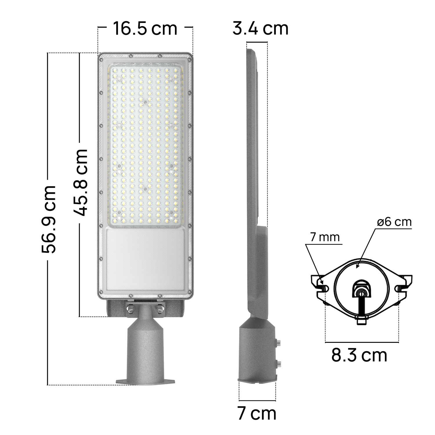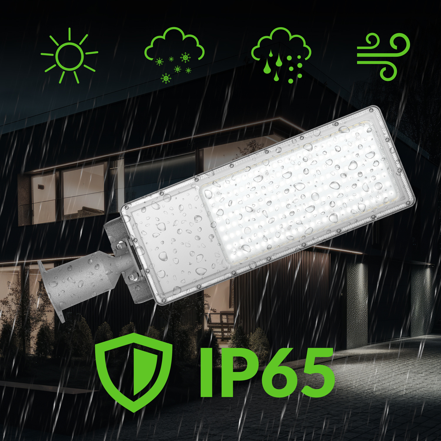 Dzięki wysokiej wydajności świetlnej 110 lm/W, neutralnej barwie światła 5000K i trwałej obudowie z aluminium, ta lampa sprawdzi się w każdych warunkach – od przydomowego podjazdu, przez parking, aż po oświetlenie uliczne i przemysłowe.