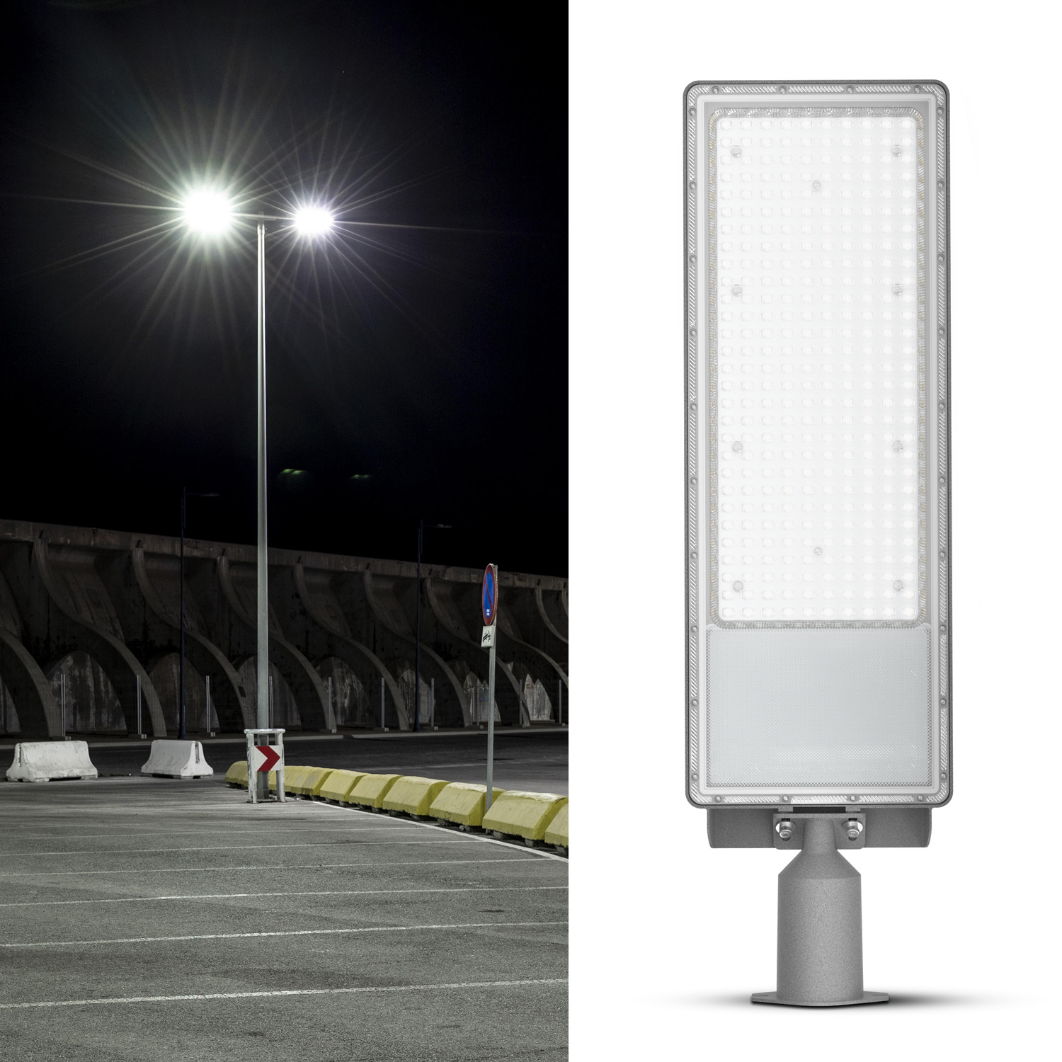 Dzięki wysokiej wydajności świetlnej 110 lm/W, neutralnej barwie światła 5000K i trwałej obudowie z aluminium, ta lampa sprawdzi się w każdych warunkach – od przydomowego podjazdu, przez parking, aż po oświetlenie uliczne i przemysłowe.