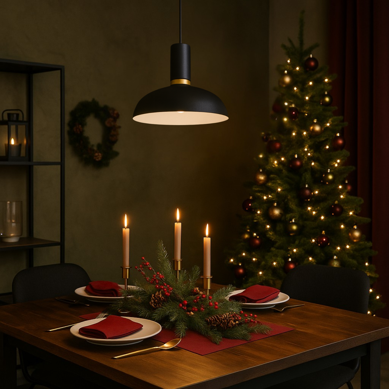 ➡️ Styl industrialny - lampa w matowej czerni z metalowym kloszem to klasyczny wybór do wnętrz industrialnych. Jej minimalistyczny design, połączony z surową formą i stonowaną kolorystyką, idealnie współgra z odsłoniętą cegłą, betonem czy surowym drewnem. Zawieszenie lampy nad stołem w jadalni, blatem kuchennym lub przestronnym salonie w loftowym klimacie podkreśli industrialny charakter pomieszczenia i doda mu wyrazistości.
