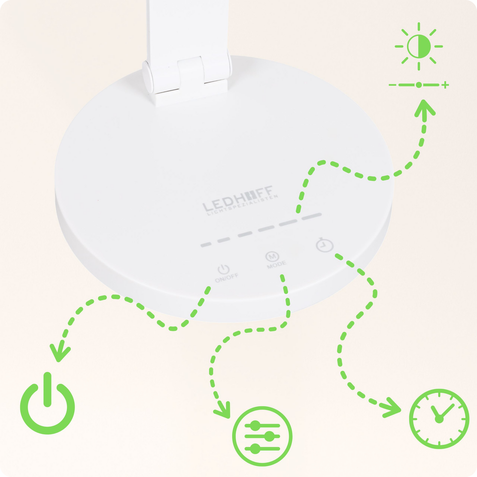Wielofunkcyjna lampka na biurko z możliwością regulacji intensywności i barwy światła, oraz dodatkową funkcją Timera - wyłącznika czasowego.