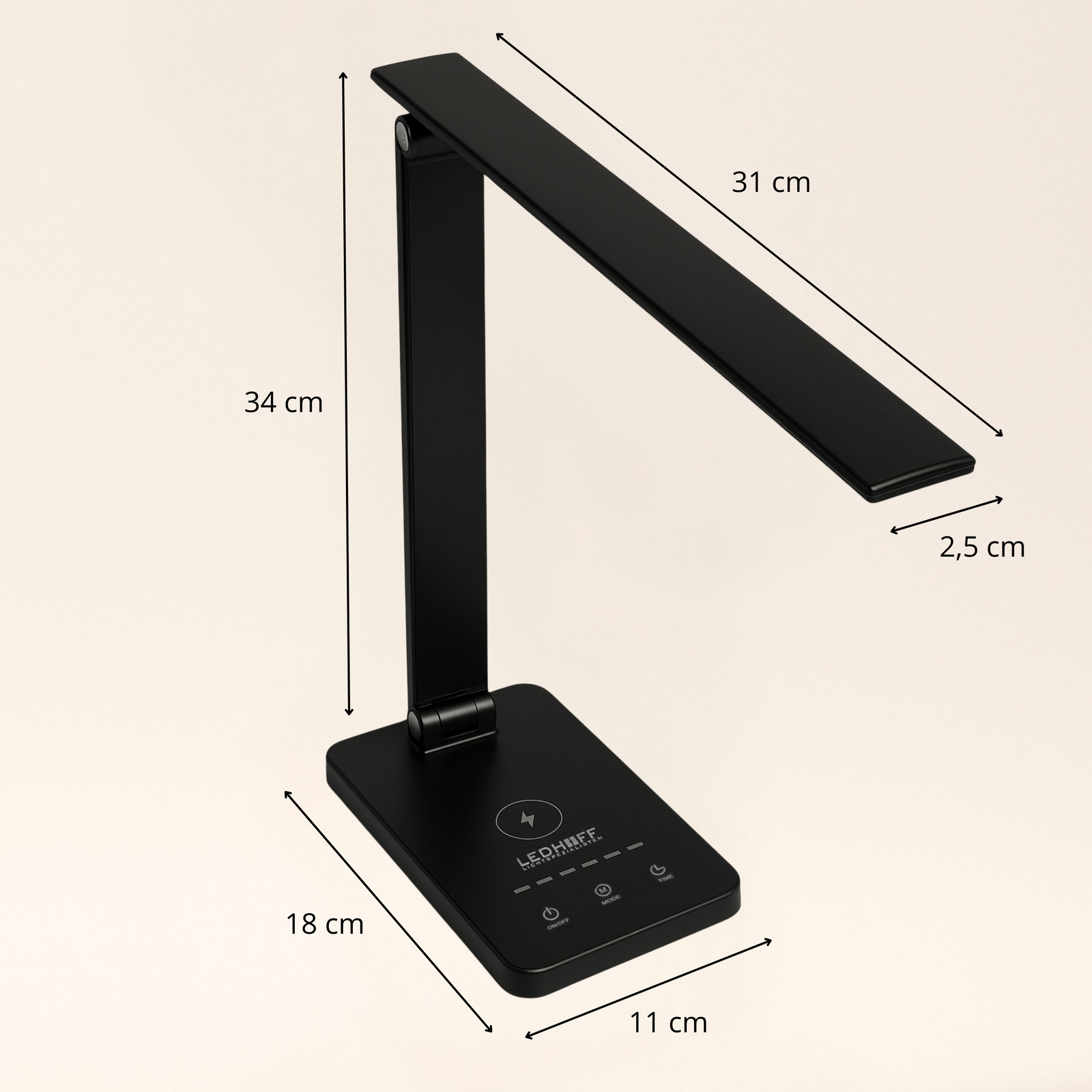 Lampka biurkowa LED czarna 6W z ładowarką indukcyjną i portem USB