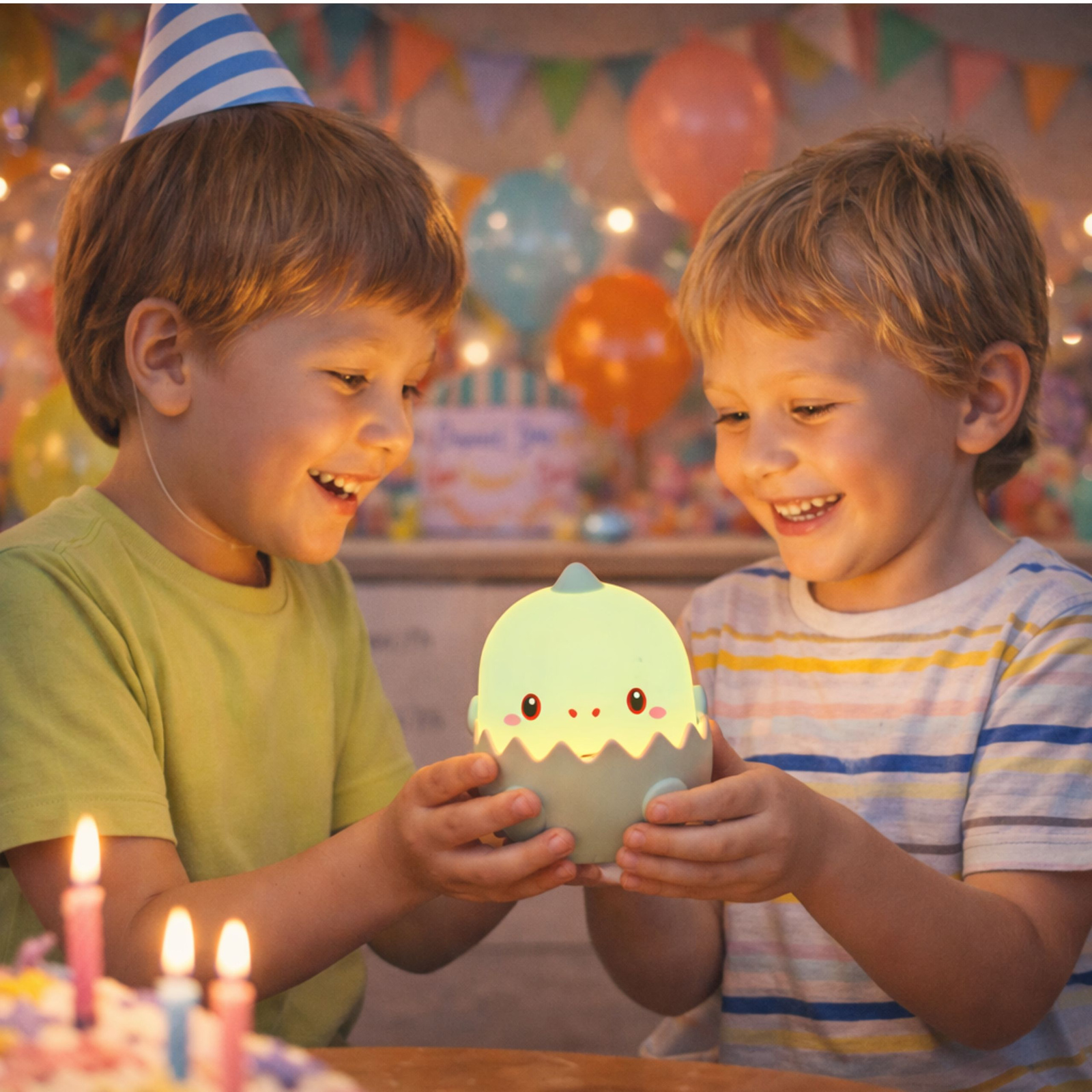 Urocza, miękka, przyjemna w dotyku lampka nocna w kształcie wykluwającego się dinozaura do pokoju dziecięcego to idealny prezent dla chłopca lub dziewczynki. Lampka stanowi wspaniałą dekorację, tworząc ciepły, spokojny i pełen poczucia bezpieczeństwa nastrój.