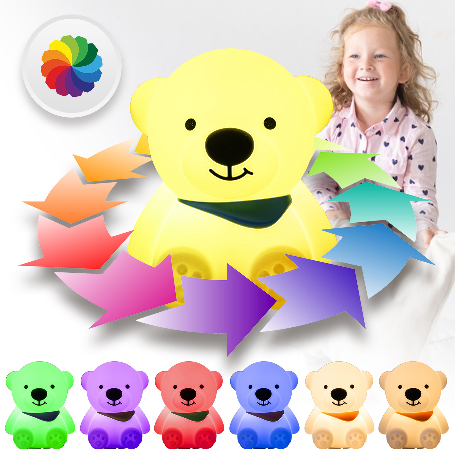 Lampka nocna LED dla dzieci MIŚ wielokolorowe światło RGB miękki silikon