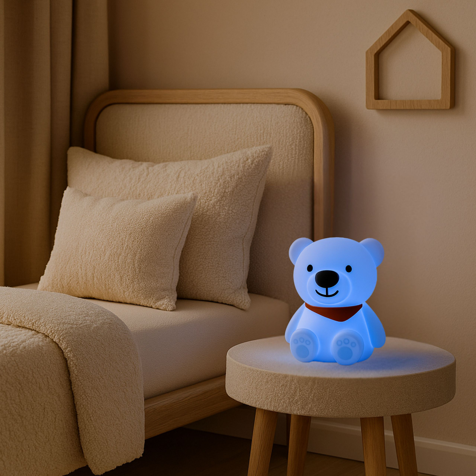 Lampka nocna to idealne rozwiązanie! Uroczy miś tworzy w pokoju dziecięcym spokojną i kojącą atmosferę, pomagając Twojemu dziecku zasnąć z uśmiechem na twarzy. Dzięki lampce nocnej każdy wieczór staje się bezpieczną i przyjemną przygodą, a sen przychodzi szybciej i spokojniej.