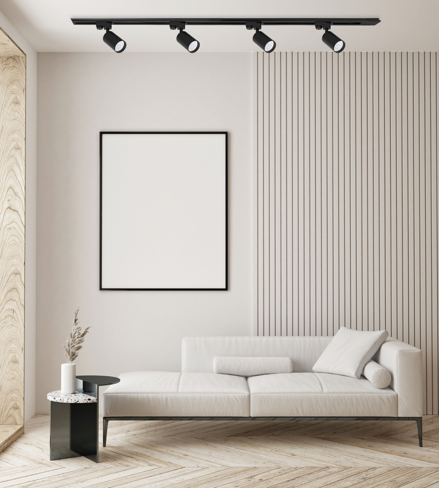 Prezentowany zestaw oświetleniowy jest jedynie naszą propozycją - dzięki opcjonalnym łącznikom i szynom o różnych długościach, istnieje możliwość rozbudowy zestawu i jego dostosowania do konkretnego kształtu pomieszczenia.