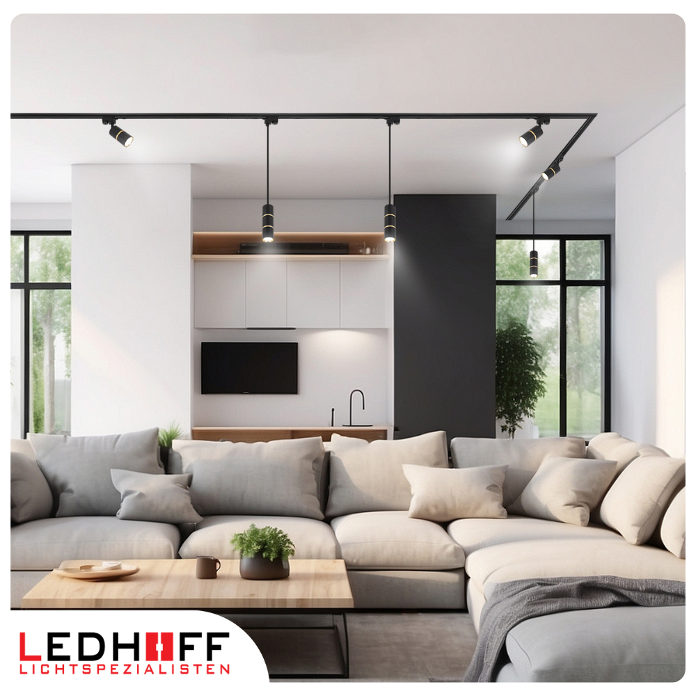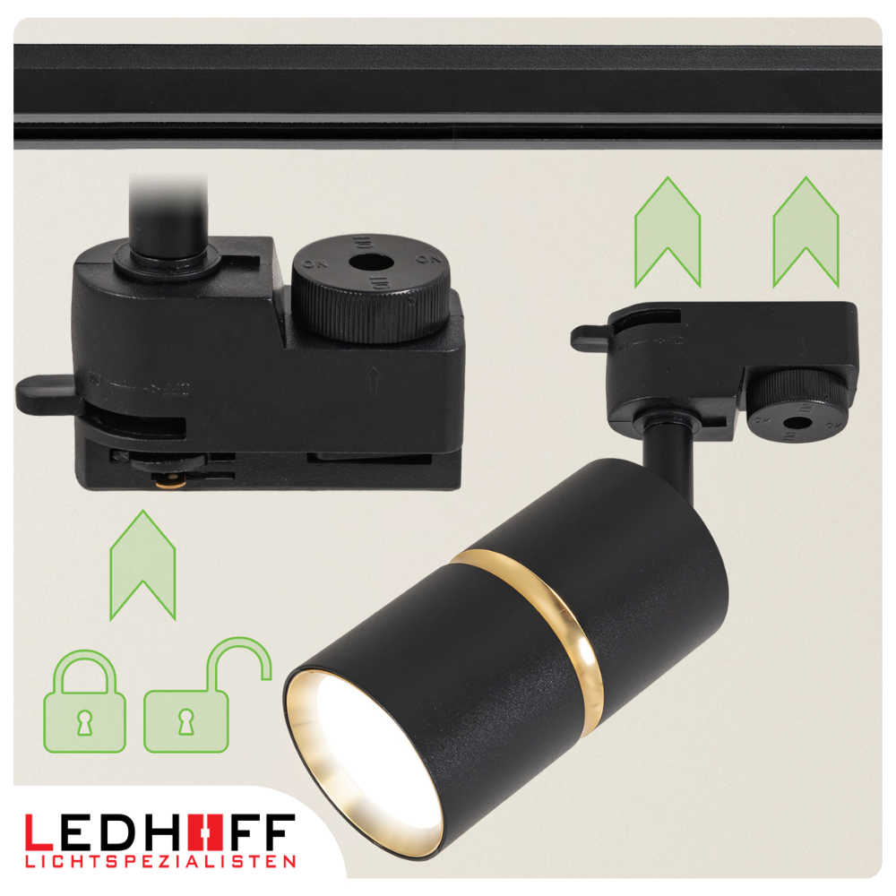 ✅ Decydując się na zastosowanie oświetlenia szynowego, możesz stworzyć zaawansowany system oświetleniowy w swoim pomieszczeniu. Czarny kolor wzbogacony złotym elementem ozdobnym sprawia, że zestaw prezentuje się niezwykle elegancko i sam w sobie stanowi dekorację wnętrza.