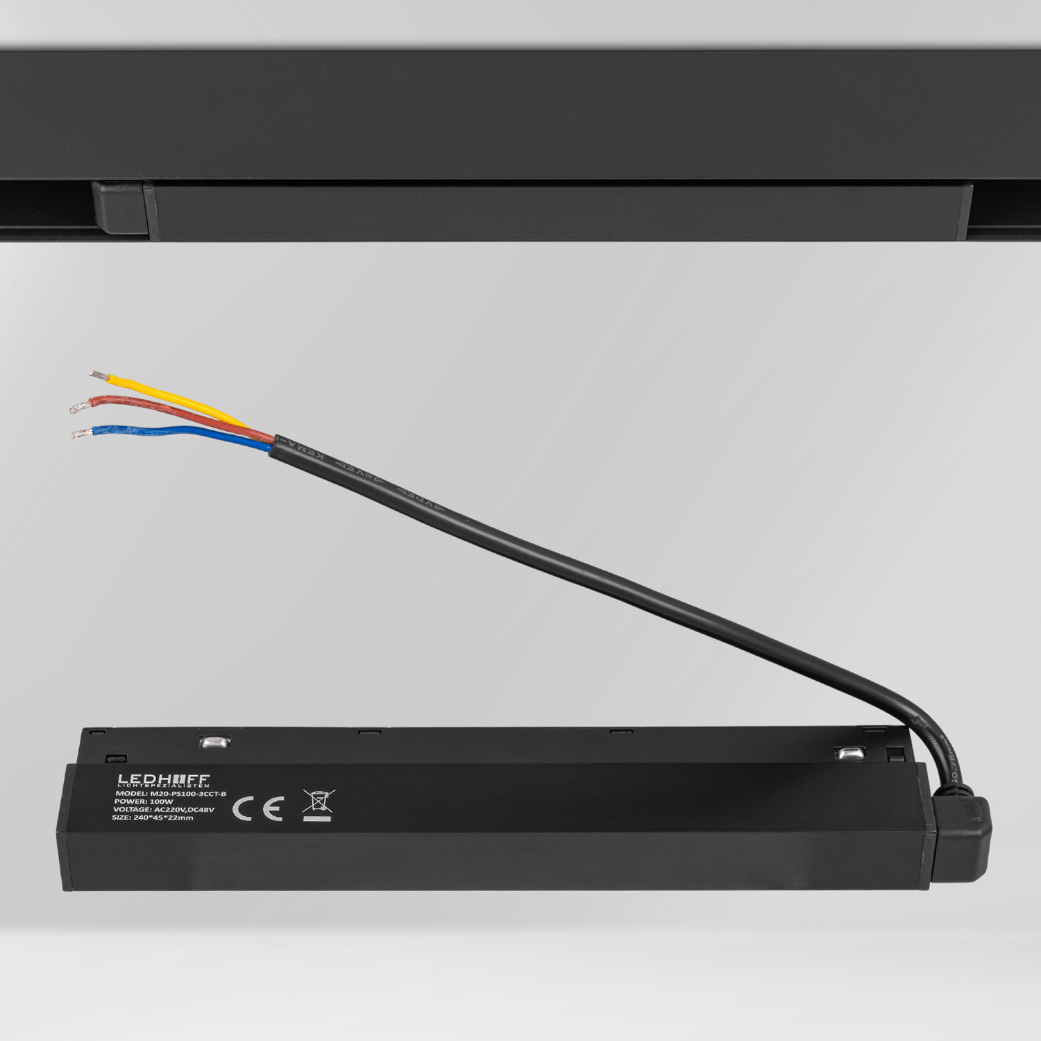 Zasilacz jest niezbędny, aby uruchomić lampy wpięte do szyn magnetycznych M20. W zależności od wielkości instalacji, zaleca się moc 100W lub 200W.