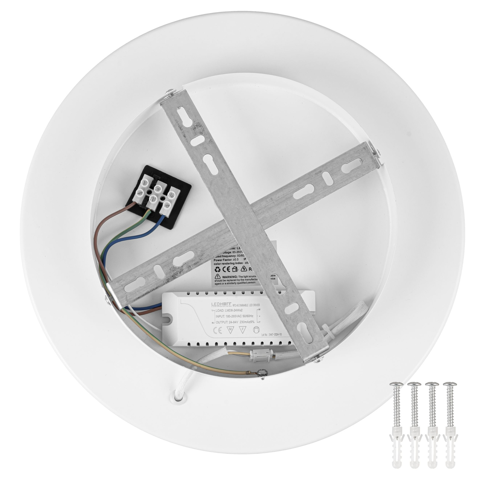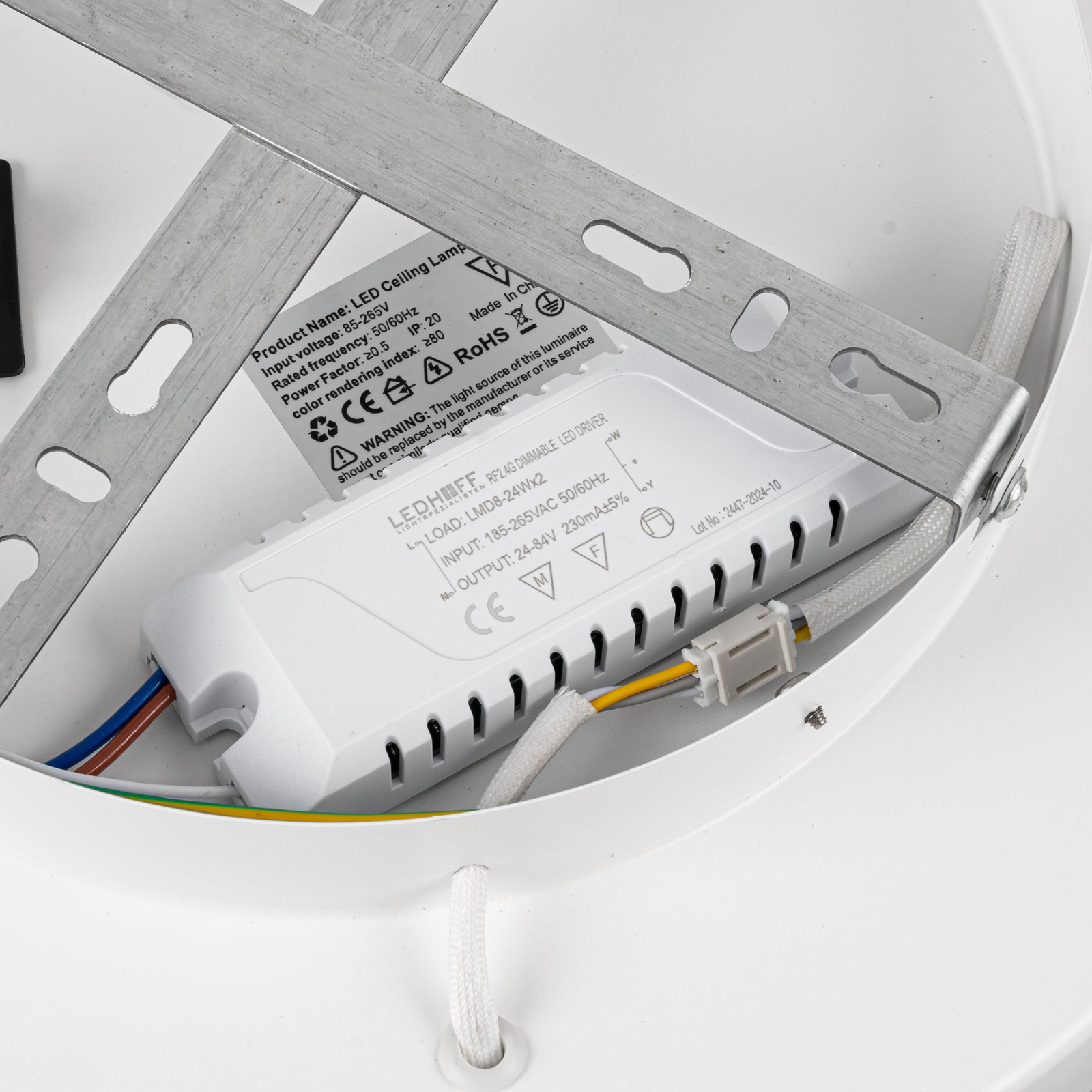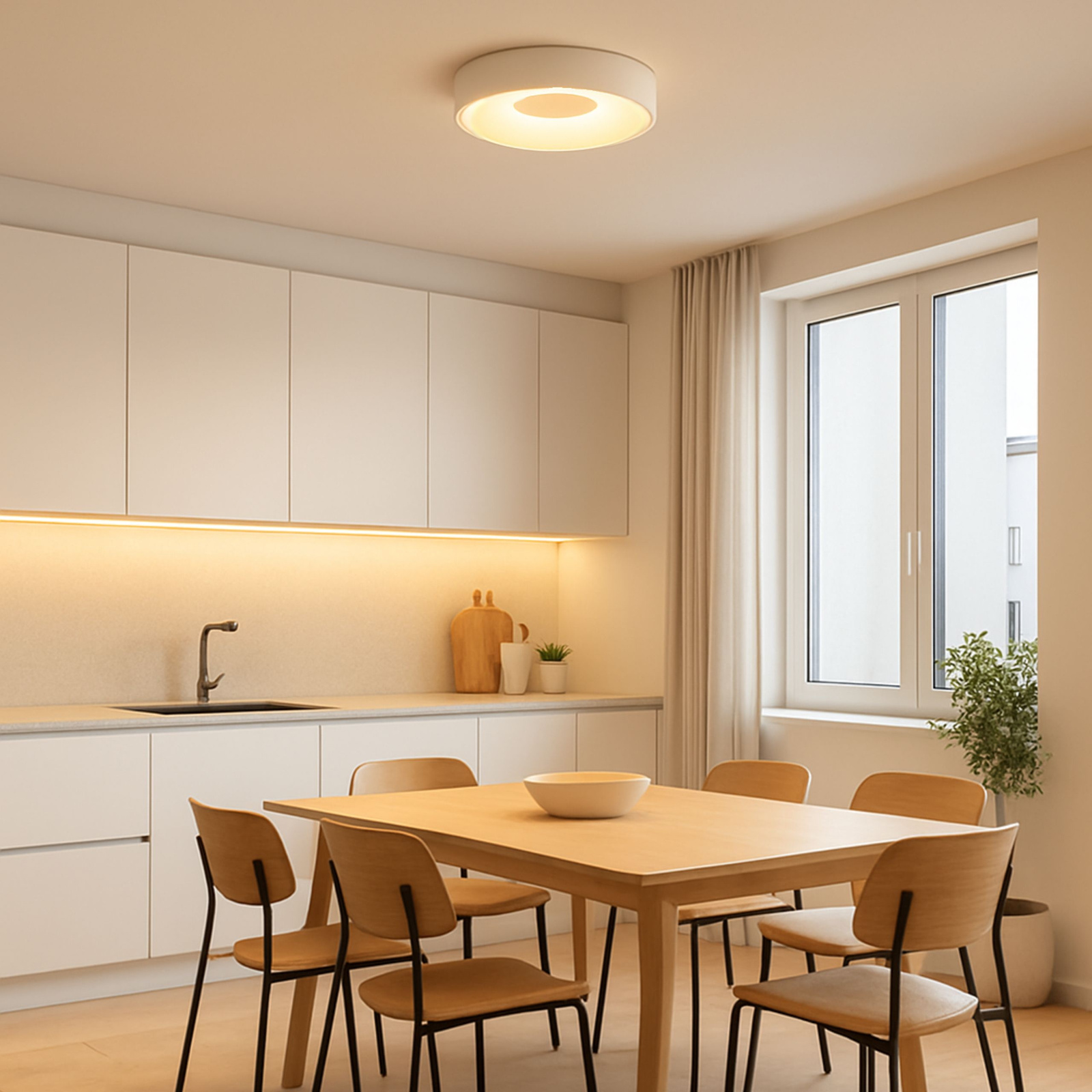 To, co wyróżnia te lampy, to sposób podświetlenia: światło emitowane jest wyłącznie z zewnętrznej krawędzi, podczas gdy środek plafonu pozostaje ciemny. Tworzy to wyjątkowy, dekoracyjny efekt świetlnej obręczy, który nadaje wnętrzu elegancki i nowoczesny charakter – bez oślepiającego blasku.