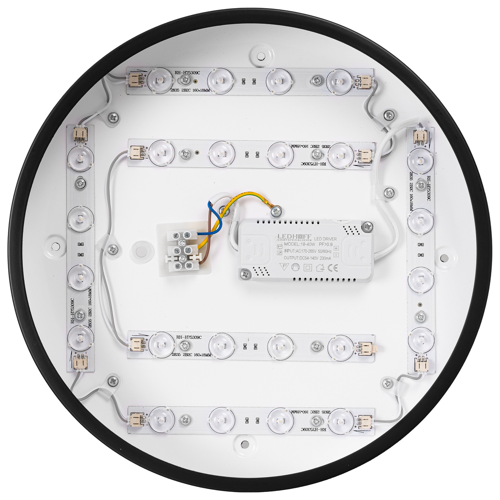 Lampa świeci najjaśniej w neutralnej barwie światła - wówczas wykorzystywane są wszystkie diody LED. W przypadku barwy ciepłej i zimnej świeci co druga z diod.