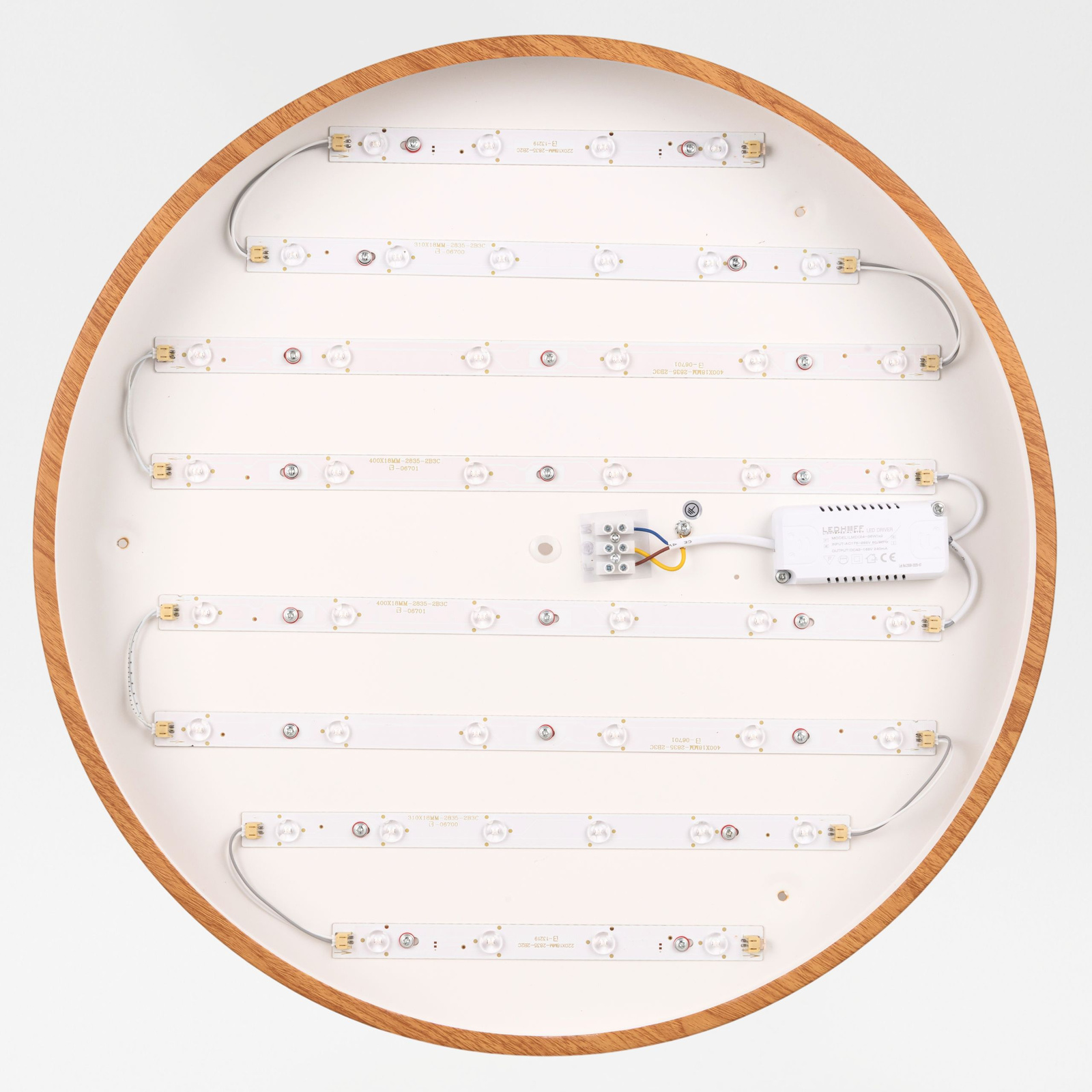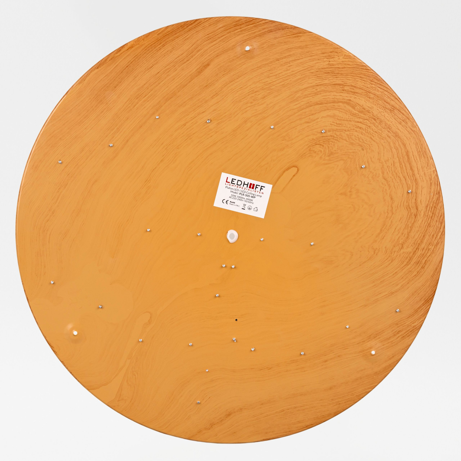 Największym atutem tej lampy jest nowoczesne wykończenie dekoracyjne, inspirowane naturalnymi drewnianymi materiałami, wykonane w technologii malowania transferowego. Dzięki temu plafon LED marki LEDHOFF: