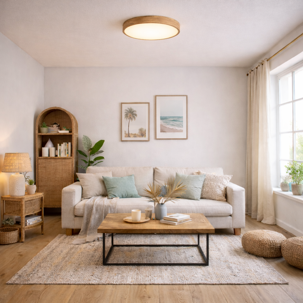 Do jakich wnętrz pasuje plafon LED z drewnianym wzorem?
