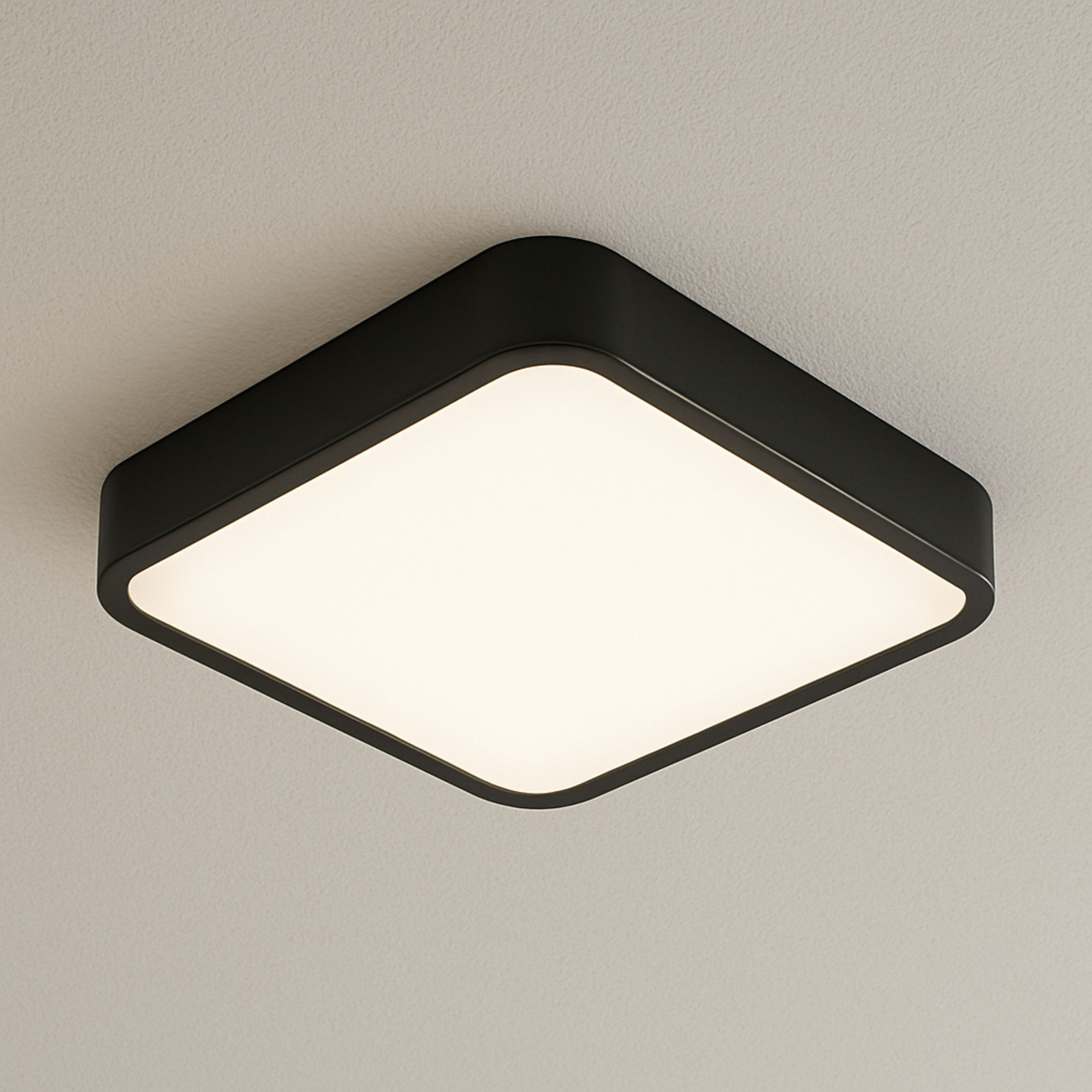 Mała kwadratowa lampa sufitowa LED marki LEDHOFF przeznaczona do montażu wewnątrz pomieszczeń. Czarny kolor sprawia, że plafon prezentuje się niezwykle estetycznie. Przykręcana bezpośrednio do sufitu za pomocą dołączonych do zestawu wkrętów montażowych. Każda z diod została przykryta pryzmatyczną soczewką, dzięki czemu cała powierzchnia lampy świeci równomiernym światłem, bez jaśniejszych i ciemniejszych plam, jak to ma miejsce w przypadku tańszych urządzeń.