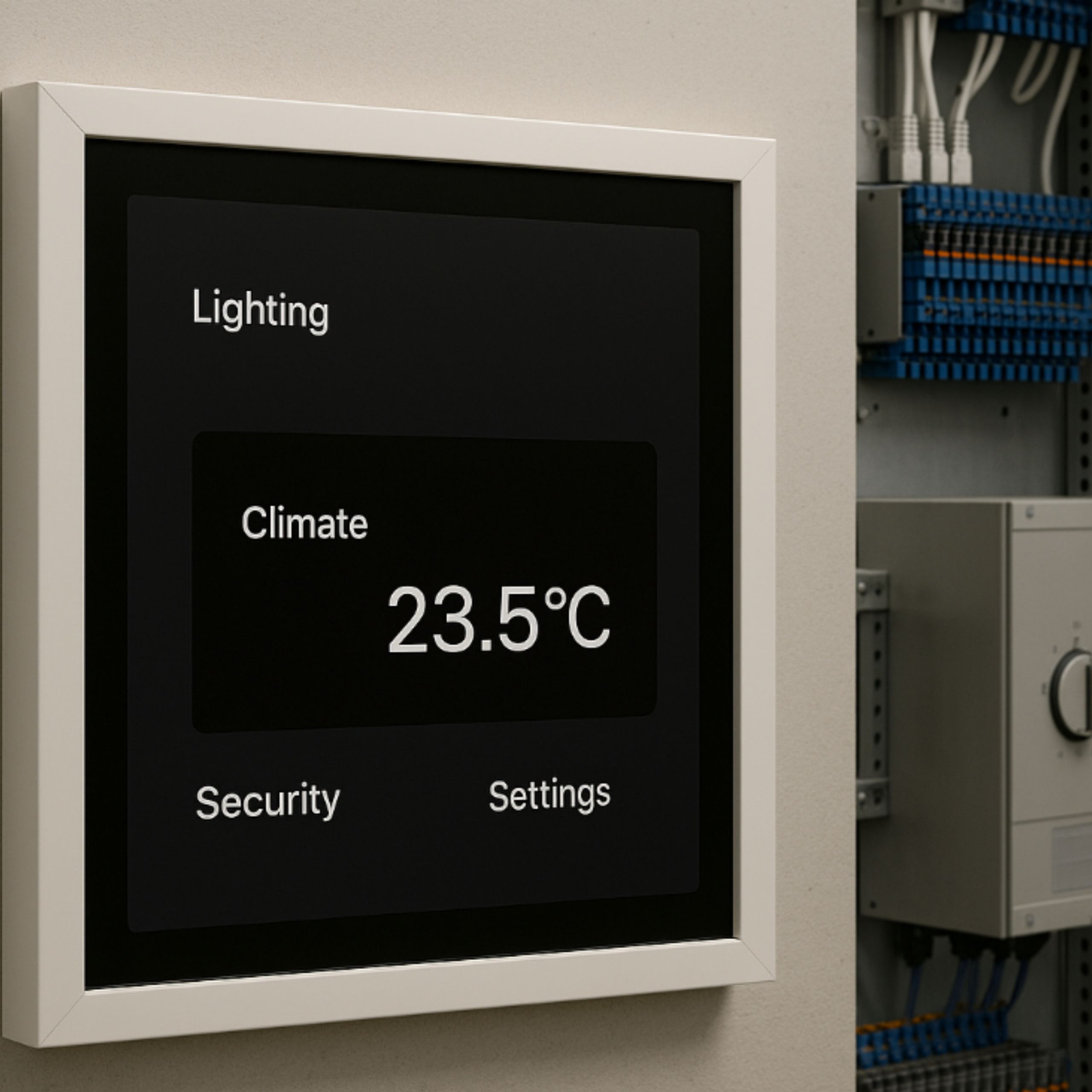 Ramka może posłużyć jako obudowa dla płaskich urządzeń elektronicznych, takich jak panele sterujące, ekrany dotykowe czy inne moduły, które wymagają estetycznego montażu na ścianie lub suficie.