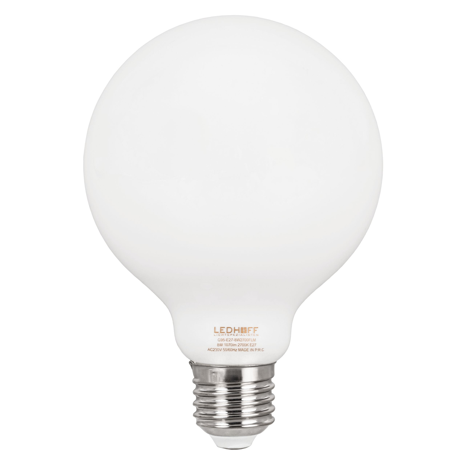 Żarówka LED E27 ozdobna duży mleczny klosz 8W mocne ciepłe światło 1070lm 2700K