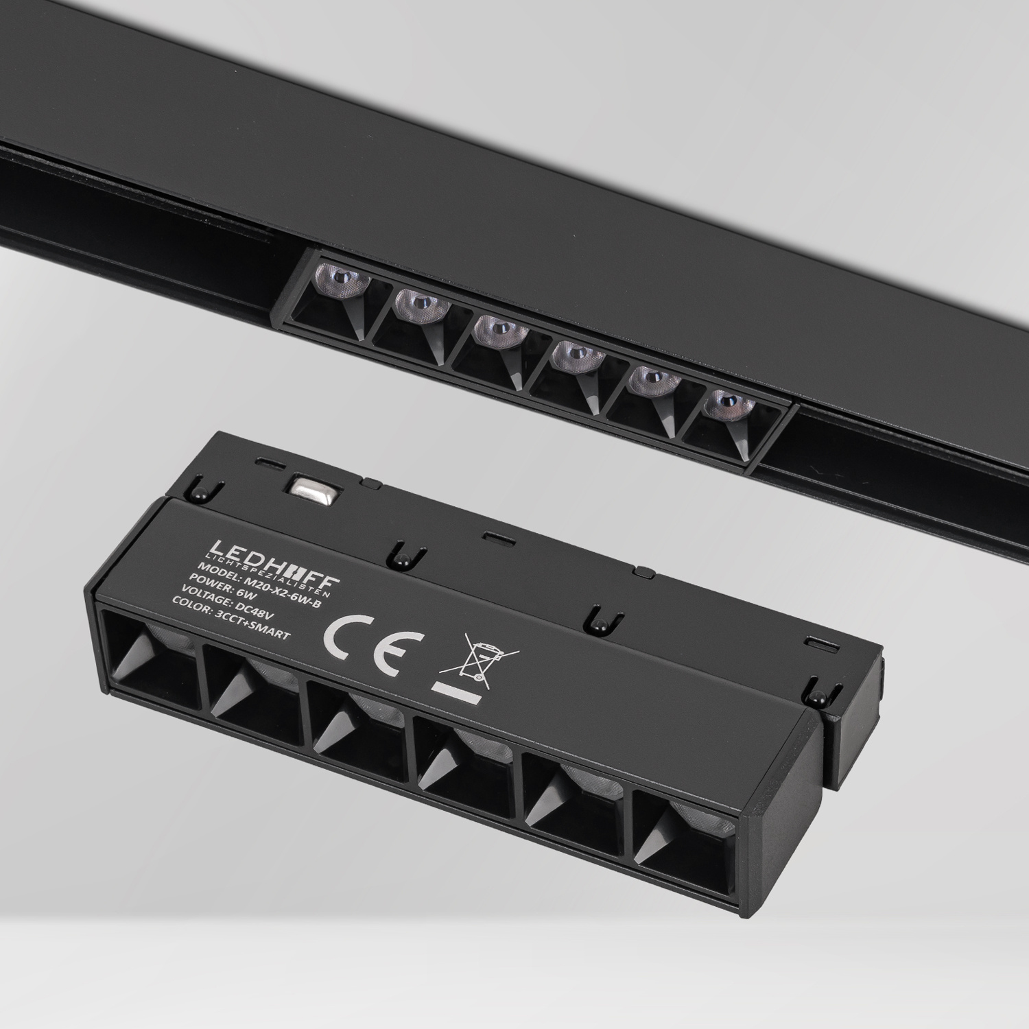 System oświetlenia szynowego magnetycznego marki LEDHOFF to połączenie maksymalnej efektywności (pełna elastyczność aranżacji, barwy i kierunku światła) i wyrafinowanej estetyki - wąskie, subtelne linie z wykończeniem w kolorze czarny mat to mocny akcent dekoracyjny, który z łatwością dopasuje się do każdego wnętrza.