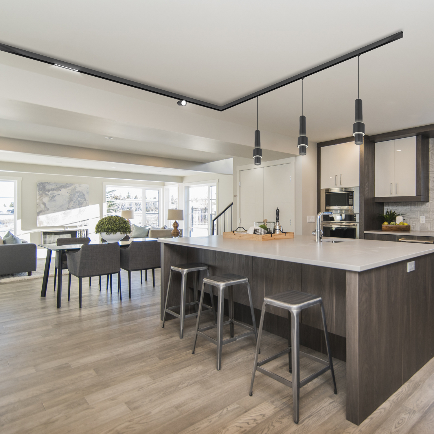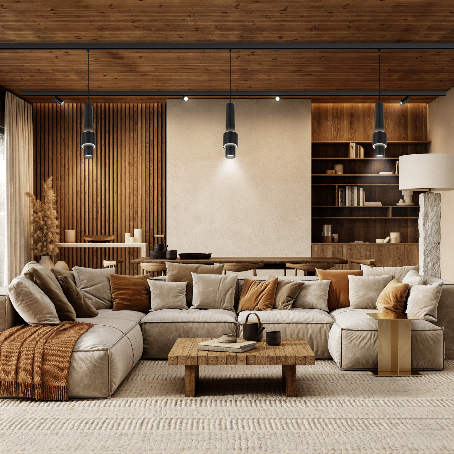System szynowy magnetyczny pozwala stworzyć elastyczny, rozbudowany układ oświetleniowy, a czarne, matowe wykończenie wszystkich składających się na niego elementów dodaje mu elegancji i ponadczasowego charakteru.