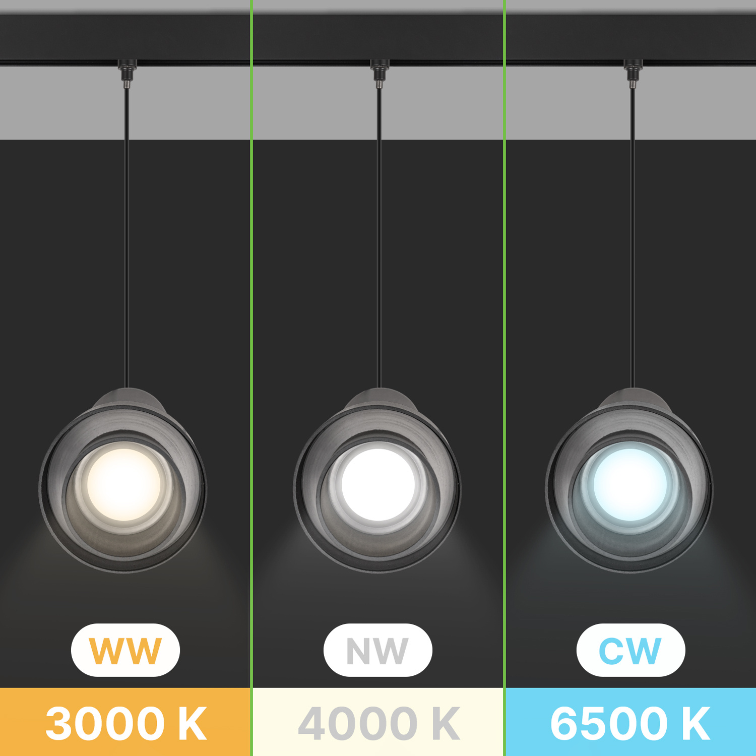 ZESTAW M20 LED 3x Lampa wisząca punktowa 12W 3 BARWY ŚWIATŁA + szyna magnetyczna 1m DESIGN