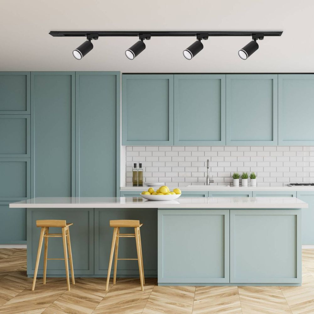 Decydując się na zastosowanie oświetlenia szynowego możesz stworzyć zaawansowany system oświetleniowy w swoim pomieszczeniu. Czarny kolor sprawia, że oprawa prezentuje się niezwykle estetycznie, a złoty środek nadaje elegancji i stanowi dekorację.